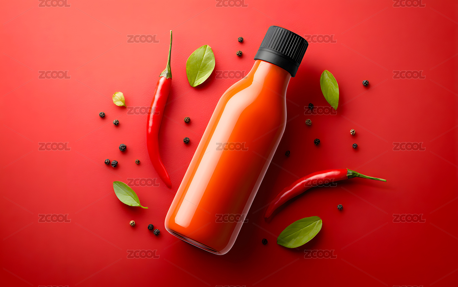 一瓶辣椒酱周围散布小米辣