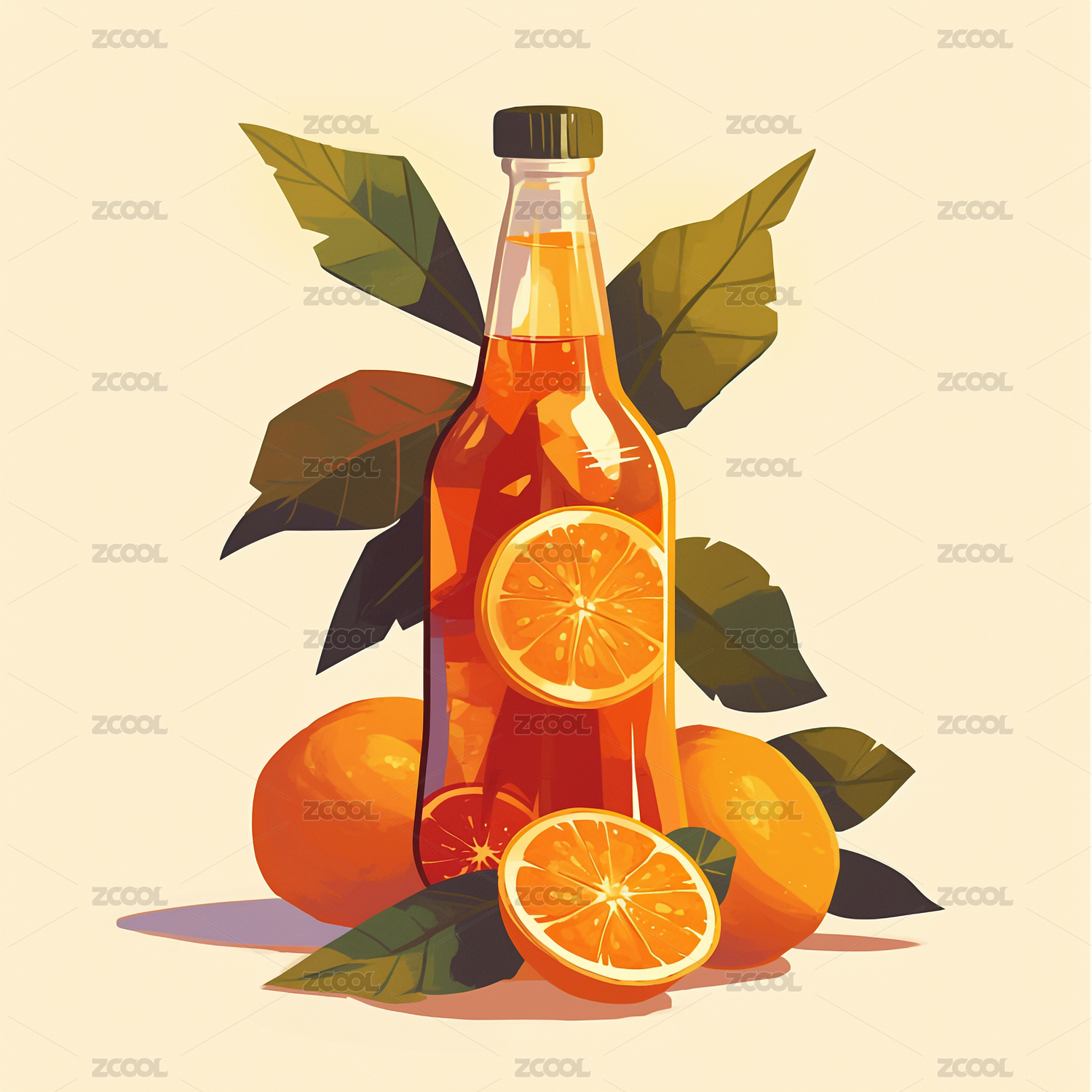 橙系果汁瓶水果绿叶艺术