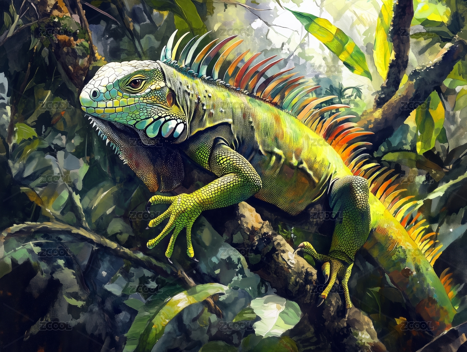 阳光下的绿鬣蜥插画