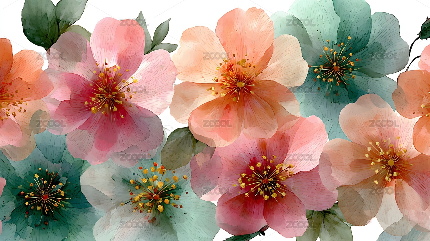 水彩,花卉,花朵,花型,花布,设计,艺术,风格,白底,彩色