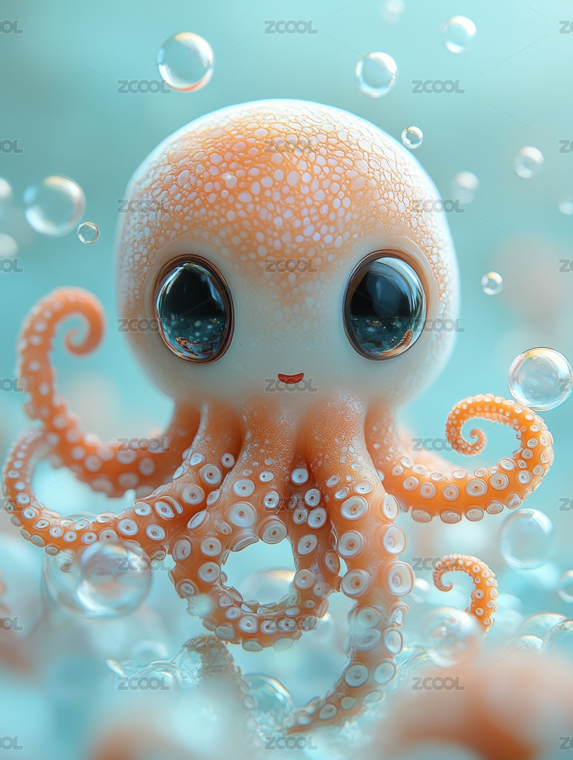 章鱼可爱唯美野生动物3D卡通插画壁纸