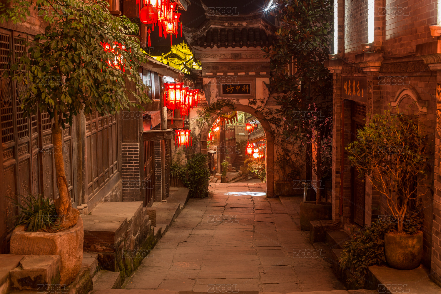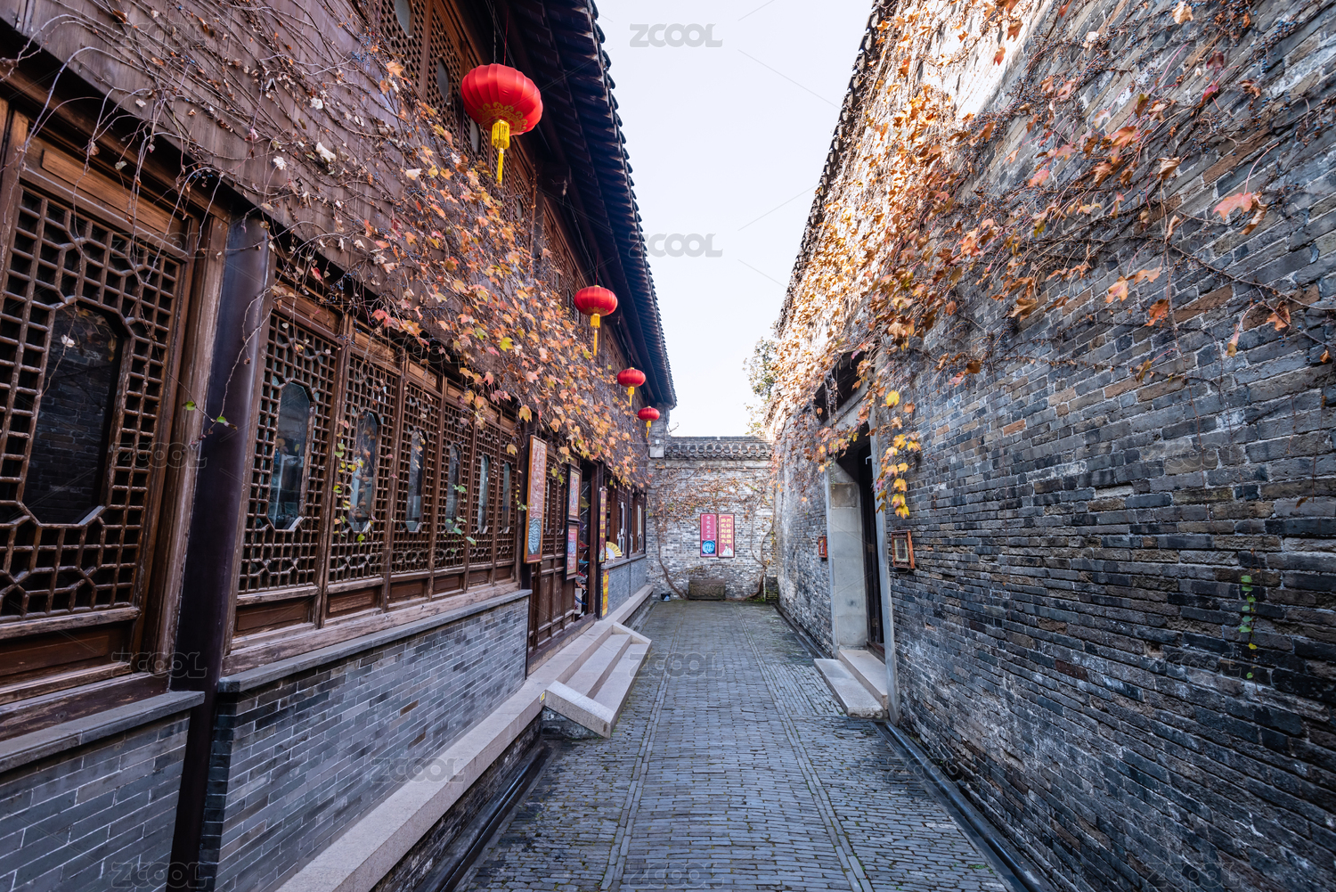 夏天中国南京熙南里老街的古建筑与盛开的凌