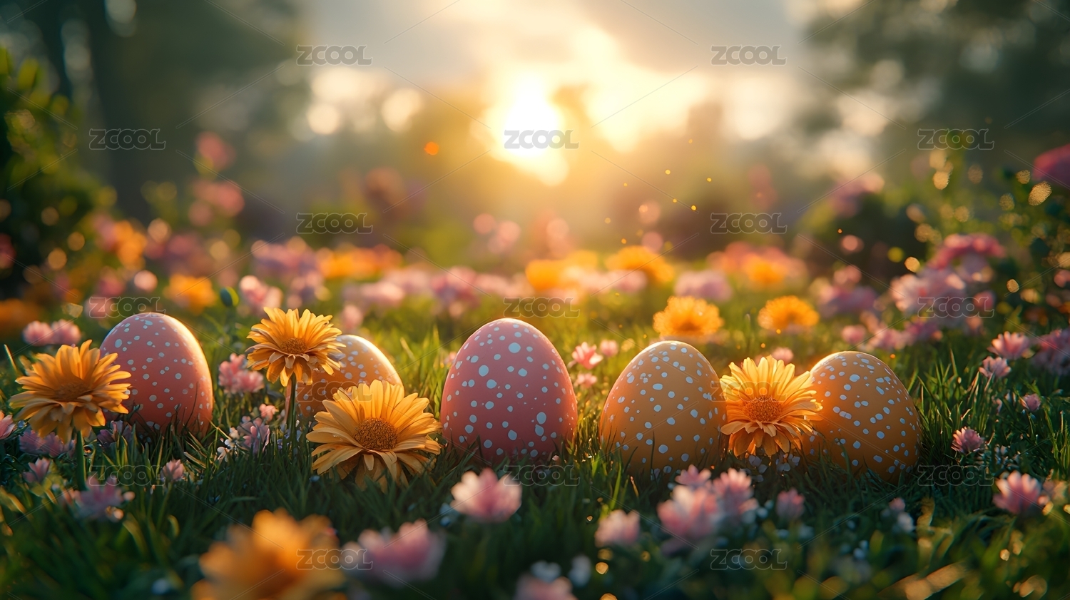 春日草地上的复活节彩蛋