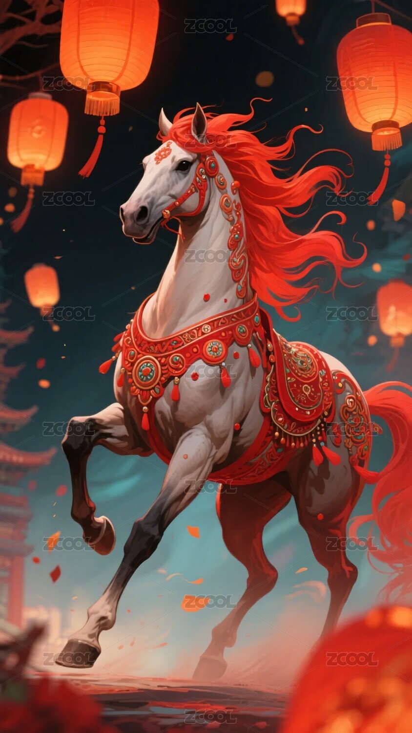 喜庆装饰的骏马插画