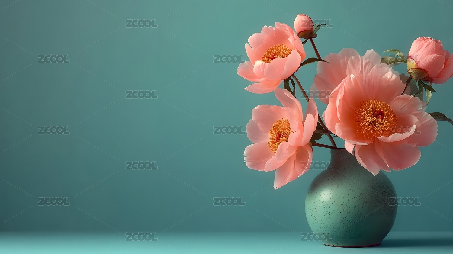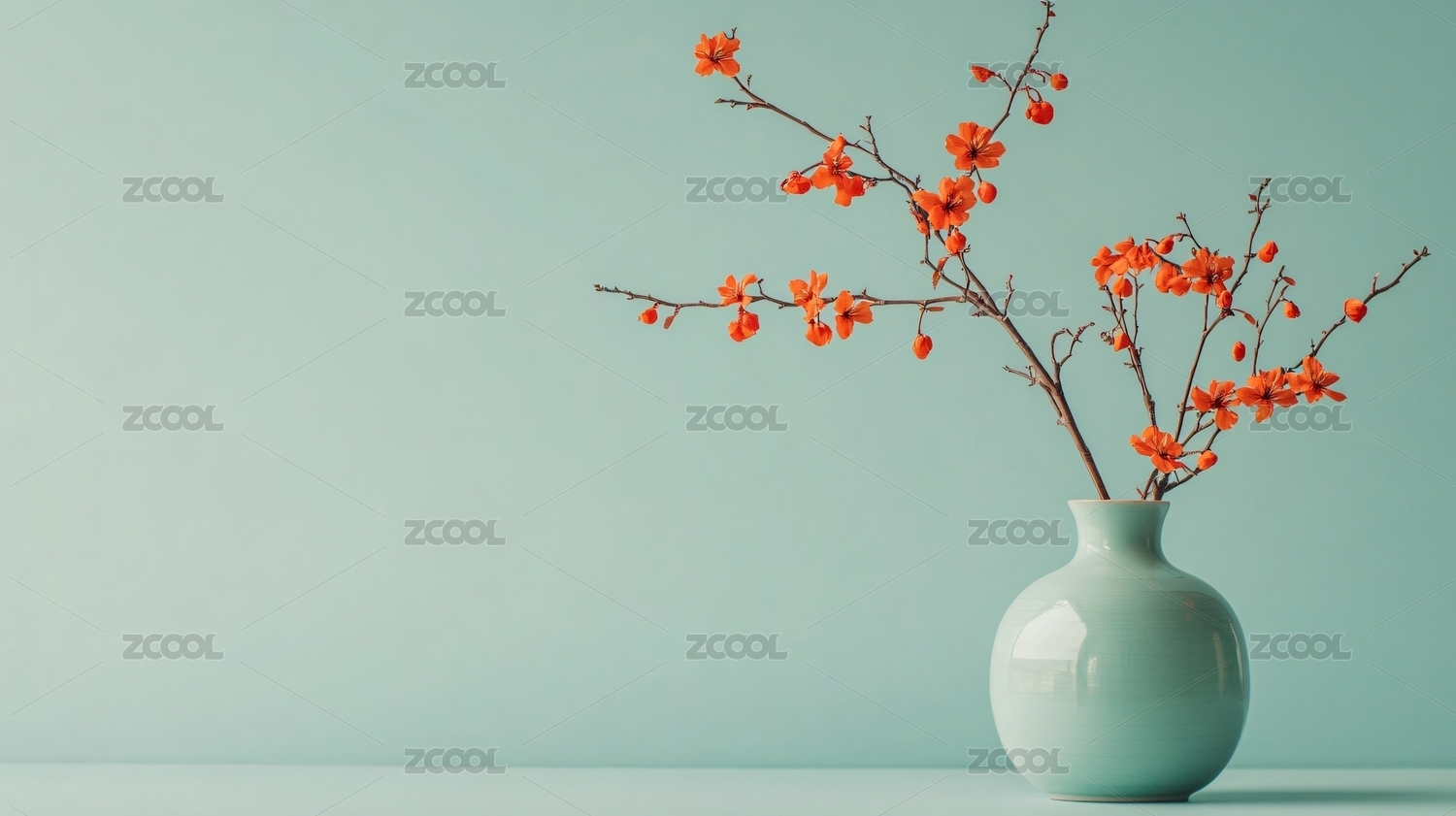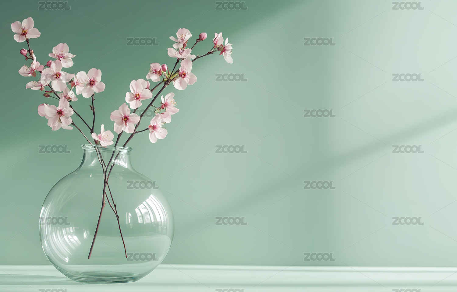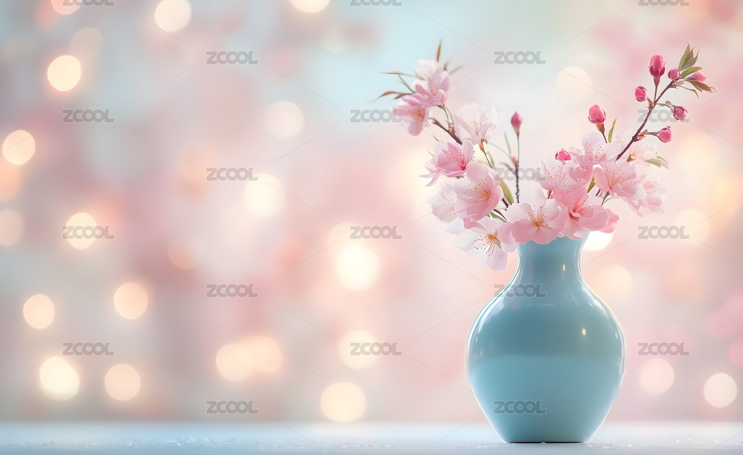 质感,背景,装饰,花朵,粉色,花瓶,枝条,浅蓝色,简约,静物
