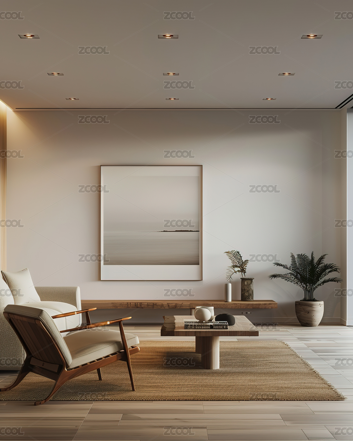 极简现代风格客厅室内设计,
