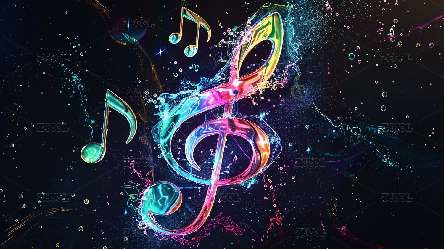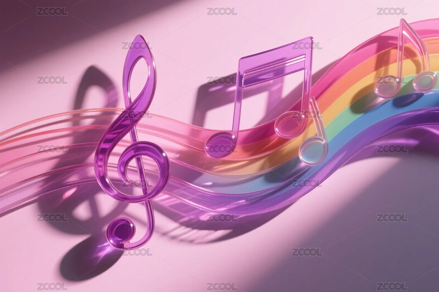 彩色音乐符号集,紫色和蓝色调的卡通音乐
