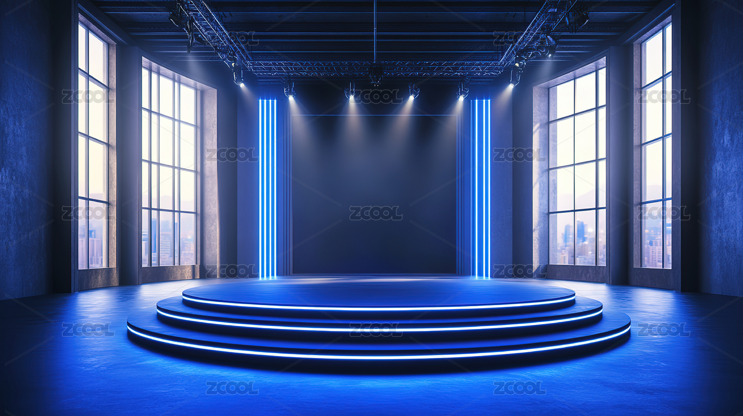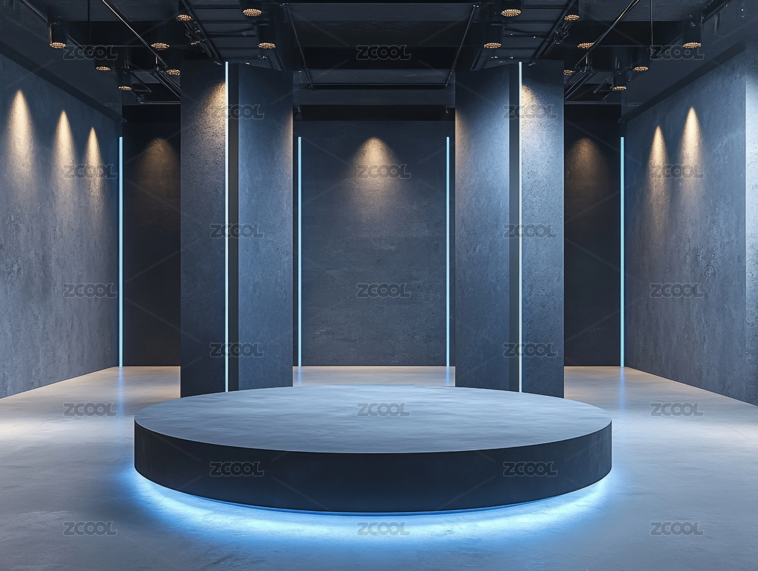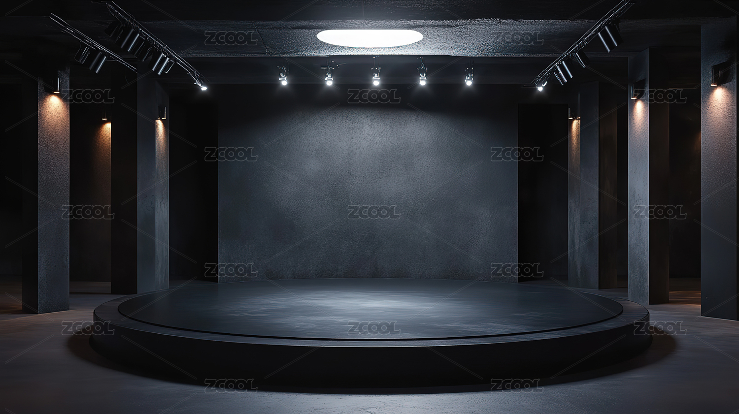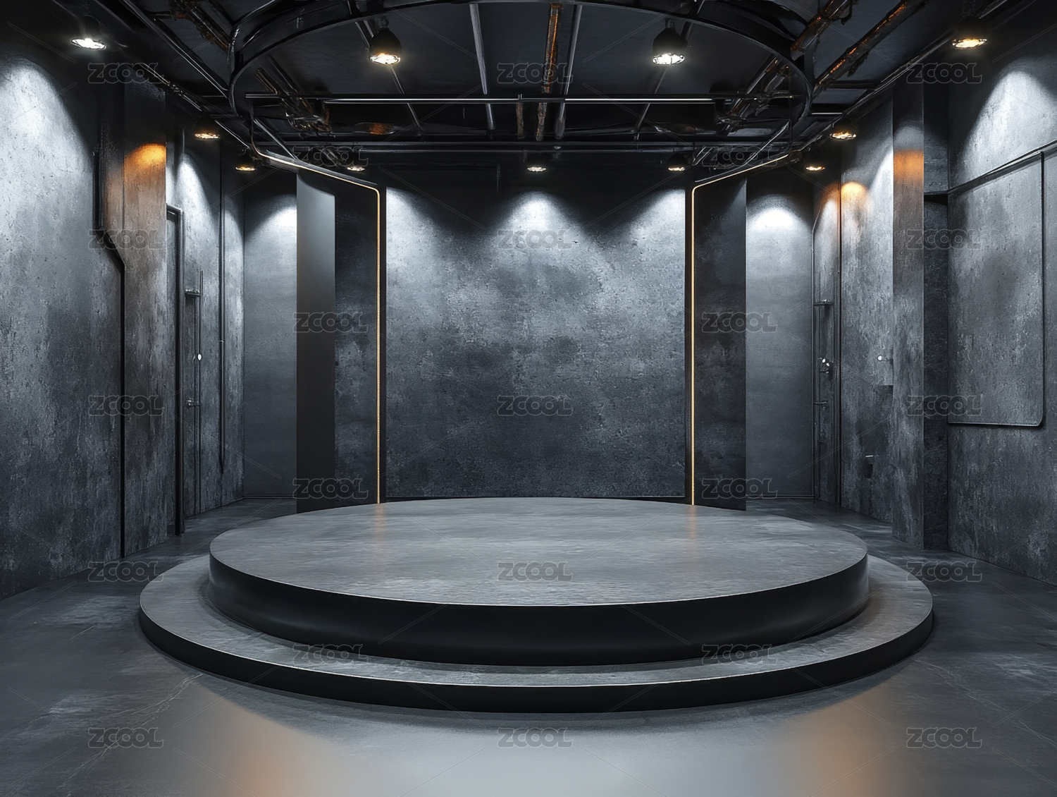 工业,风格,展示,平台,圆形,舞台,金属,结构,灯光,混凝