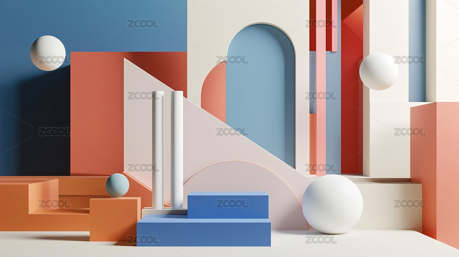 3D抽象空间极简空间简约风格现代建筑室内