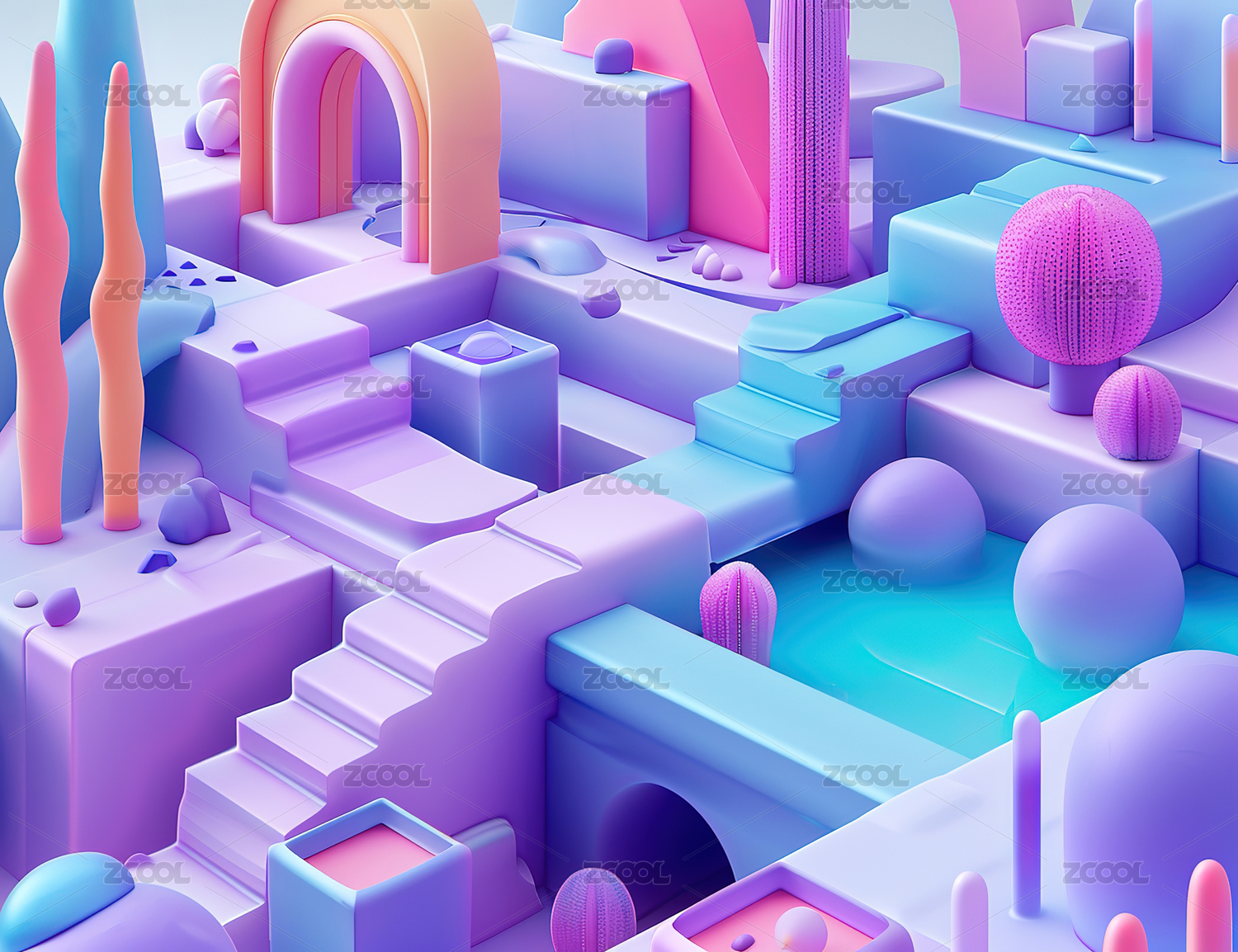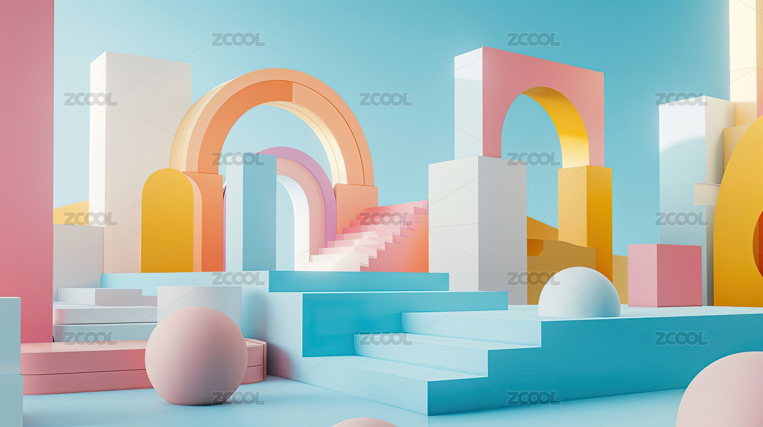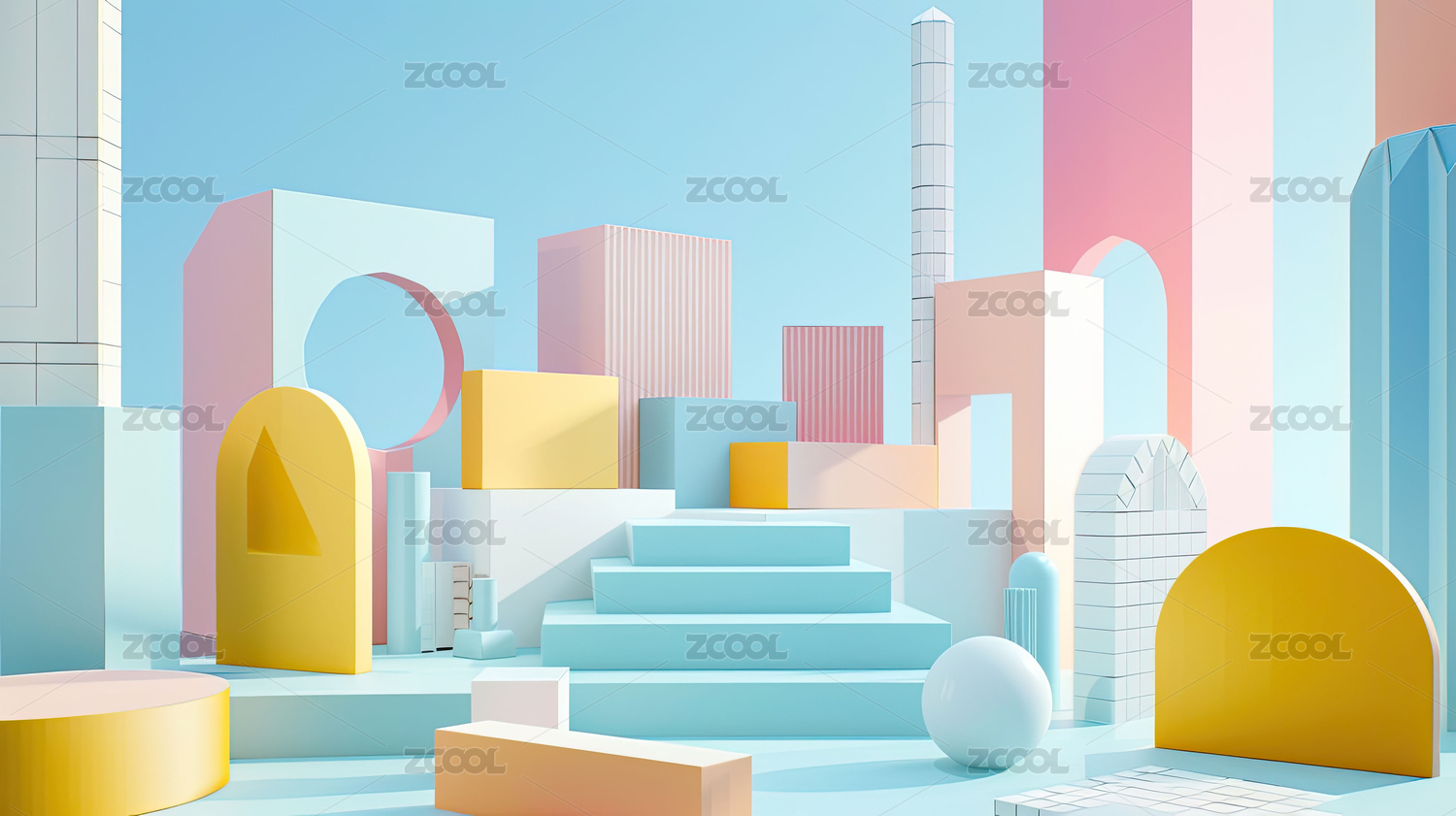 卡通清新几何场景多巴胺配色