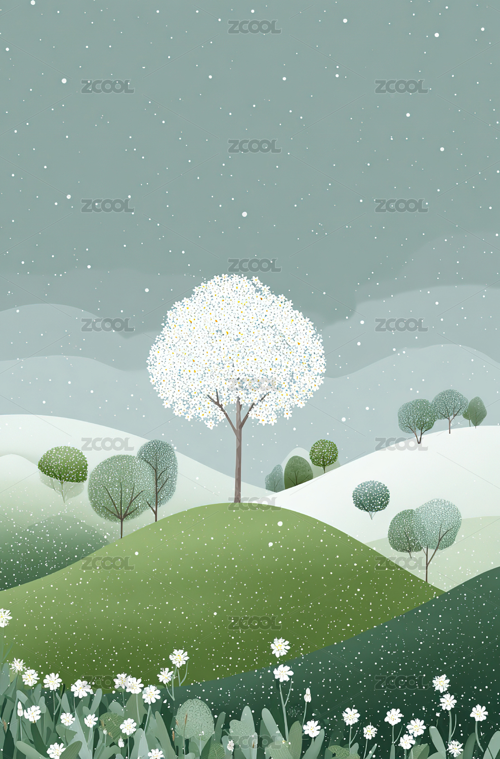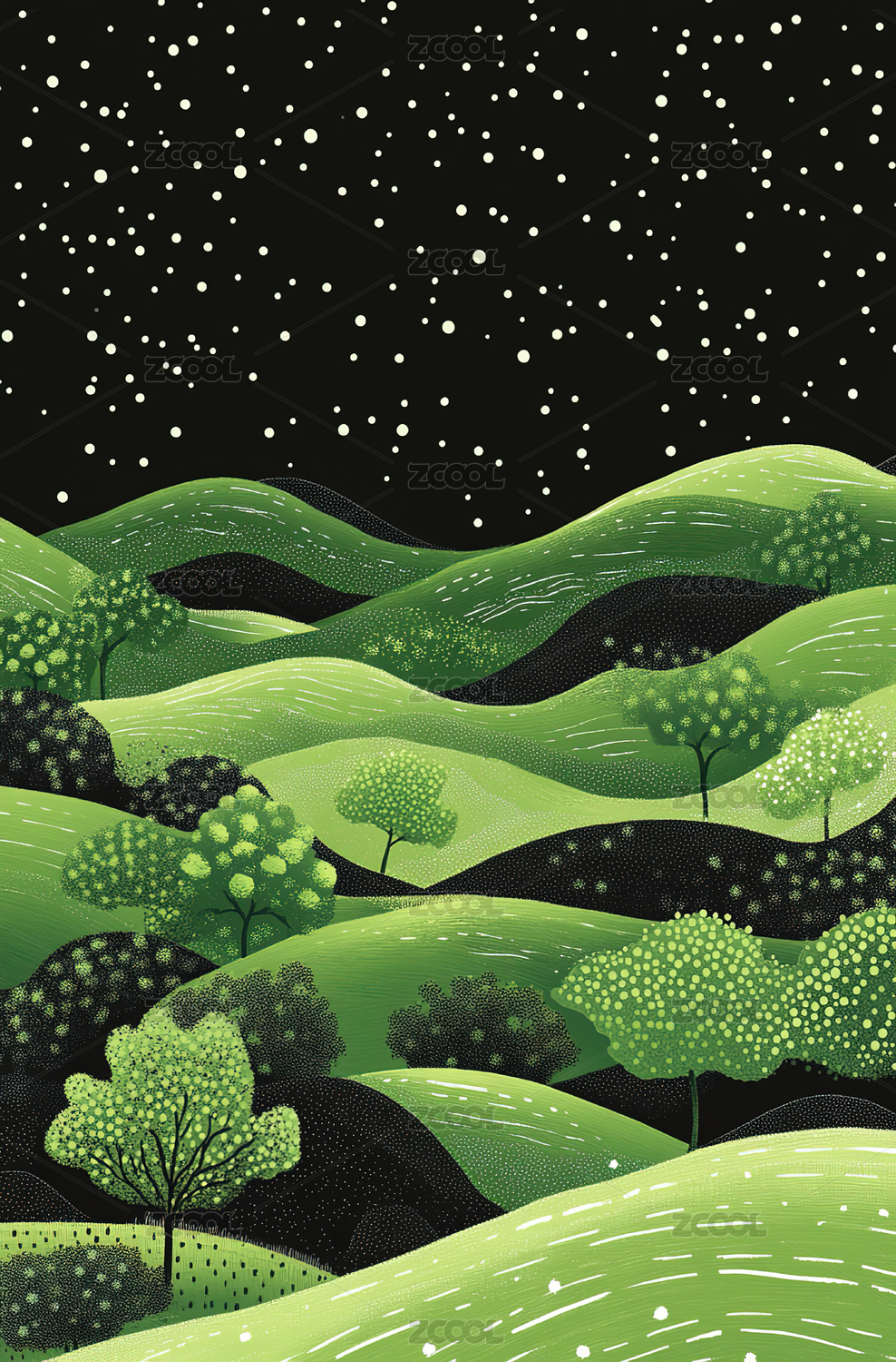 绿色,山丘,活力,生机,田园,景观,植被,卡通,插画,生态