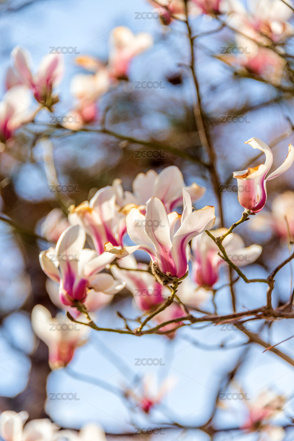 玉兰花,花朵,春天,绽放,花瓣,枝条,粉色,白色,优雅,清新