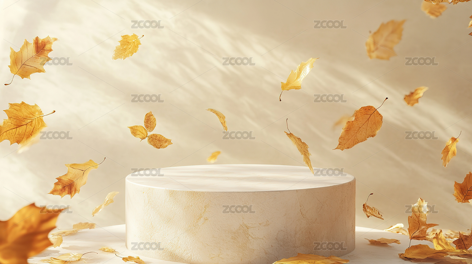 秋天金黄色树木掩映下白色圆形展台3D场景