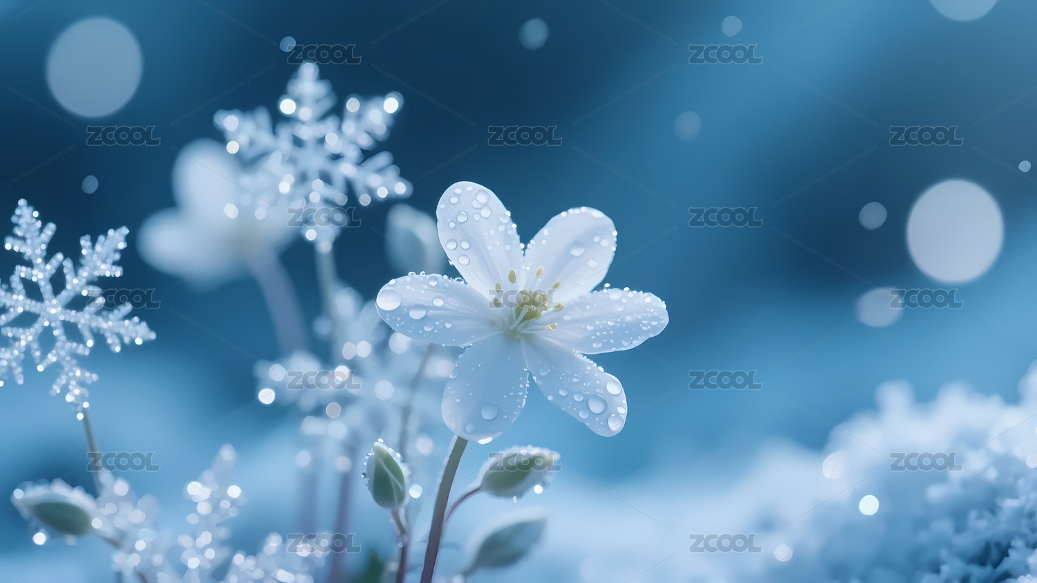 白花水珠雪花冬日美