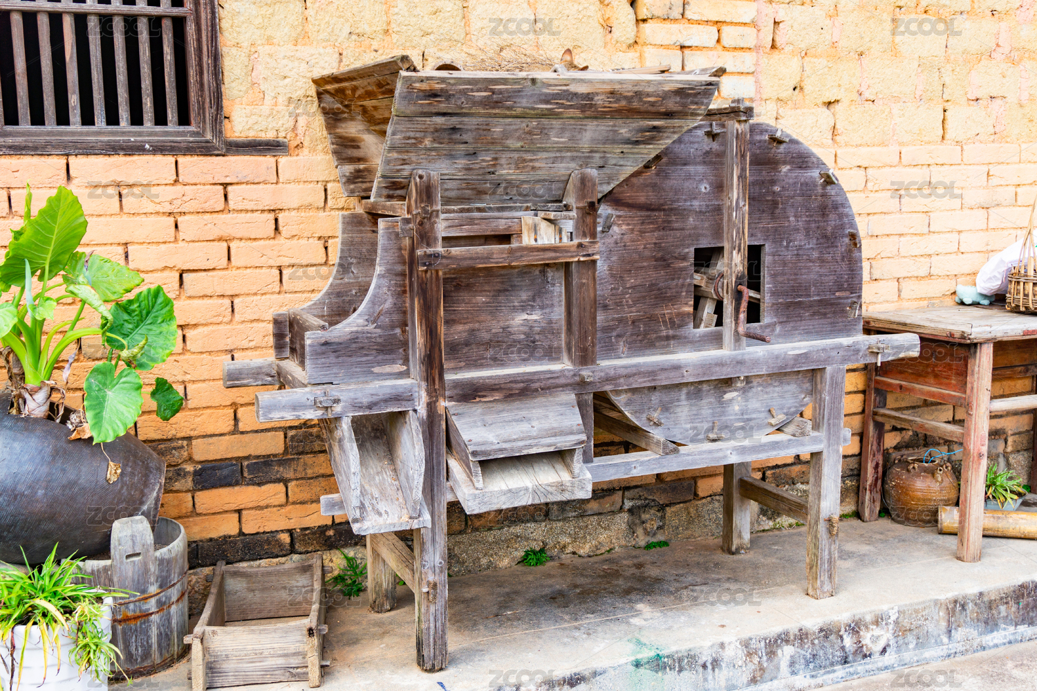 中国农耕时期传统风车老风箱特写