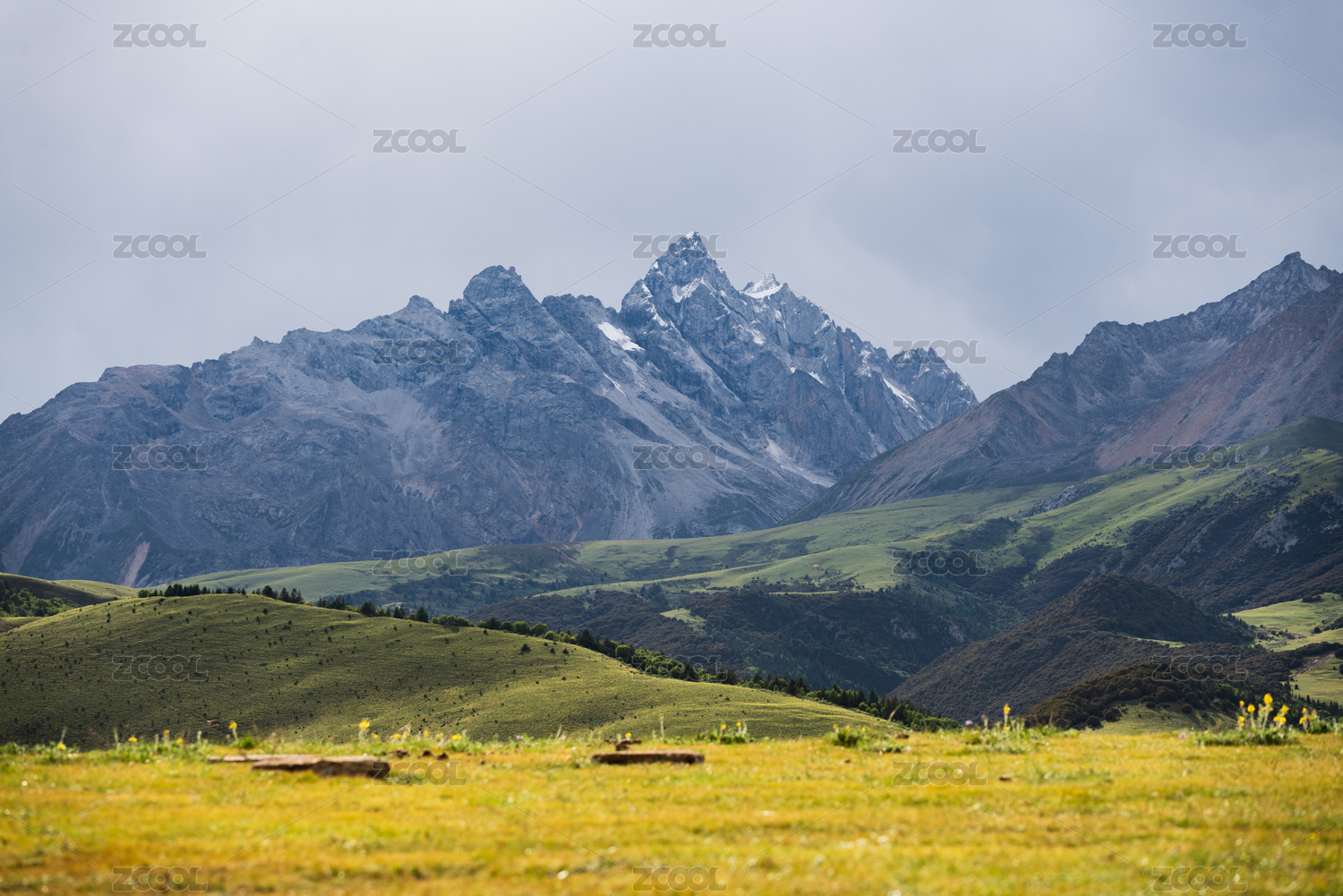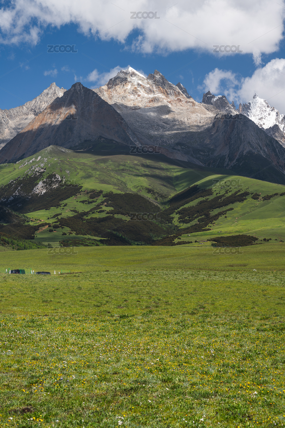 中国四川甘孜州康定青绕神山高山林区草甸风光