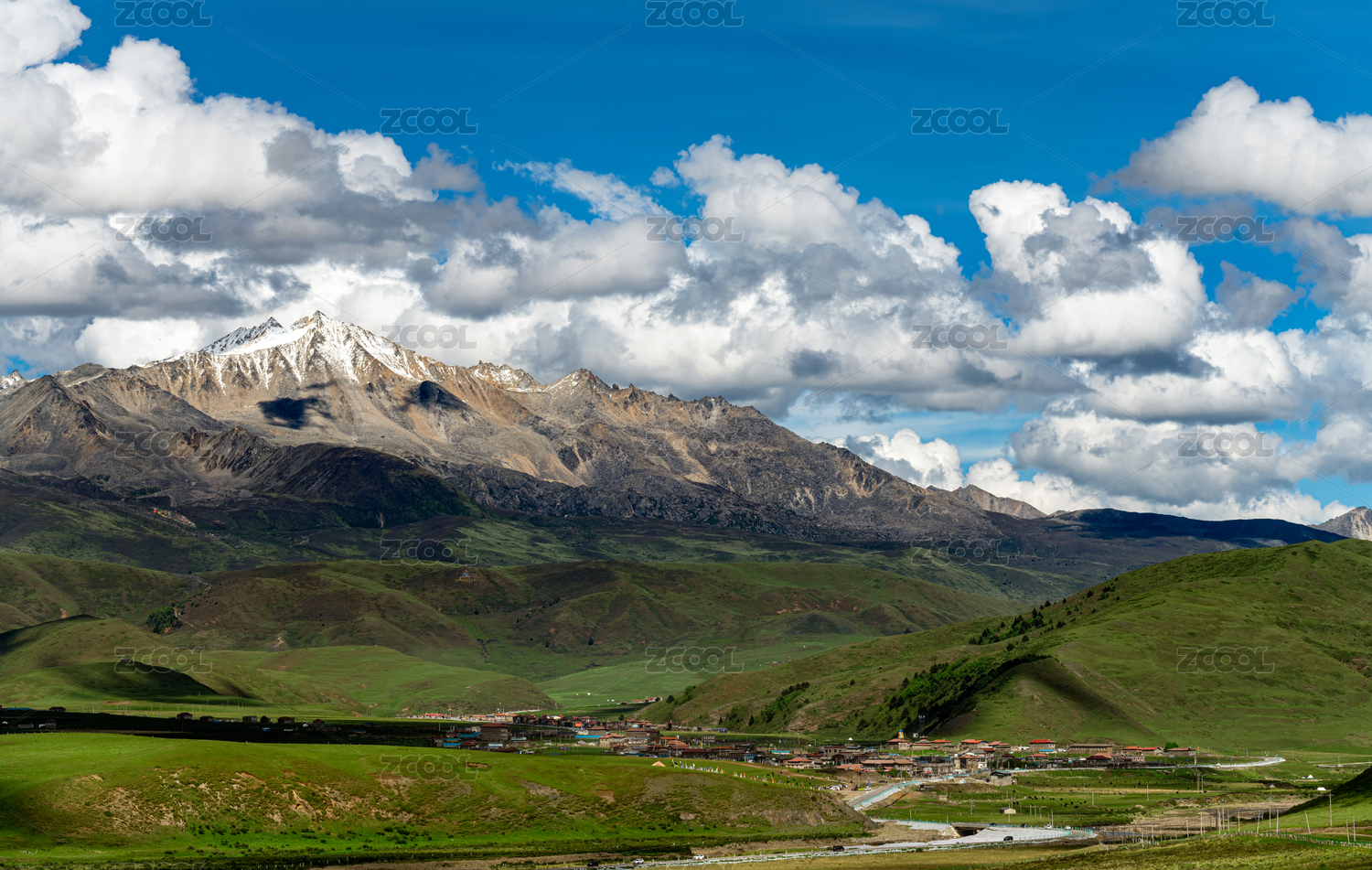 川西格聂雪山和雪山下的村庄