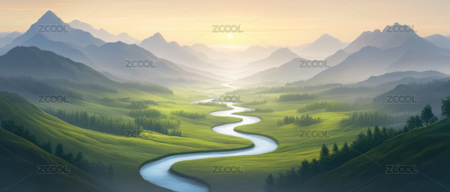 自然, 宁静, 远山, 清澈, 明亮, 风景, 景色, 树木, 绿色, 植被