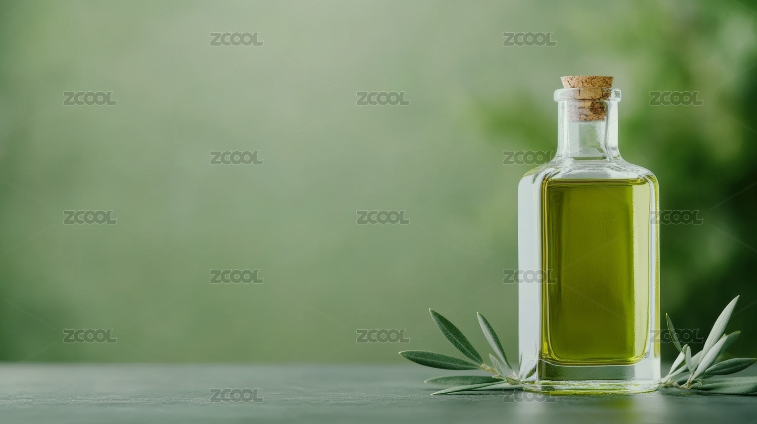 绿色瓶装的橄榄油
