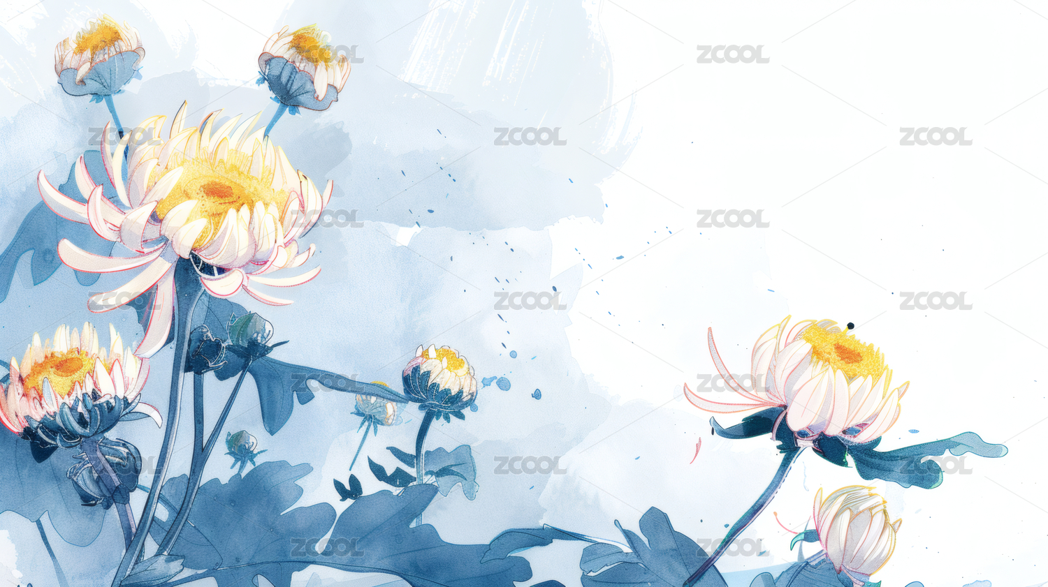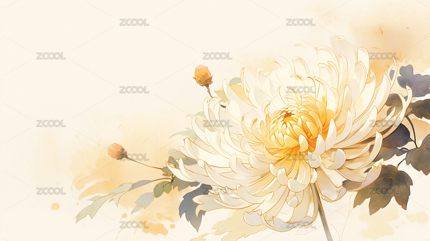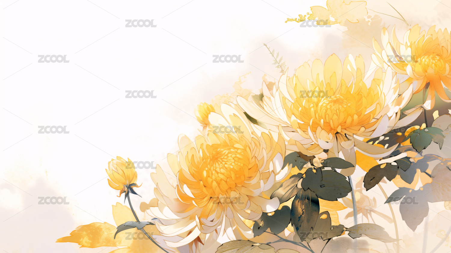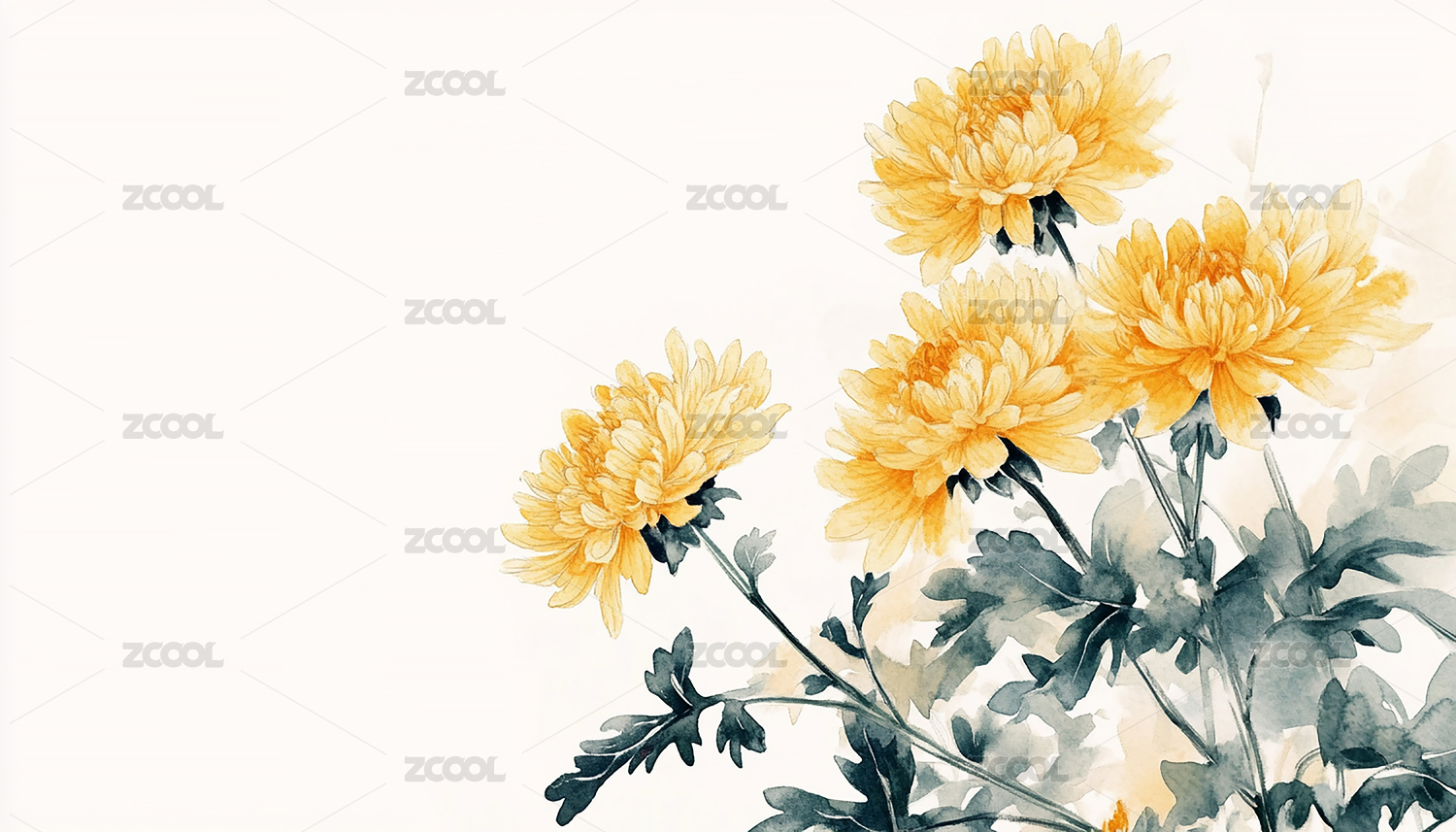 水彩,风格,绘画,插画,淡雅,鲜花,花朵,花瓣,叶子,黄色