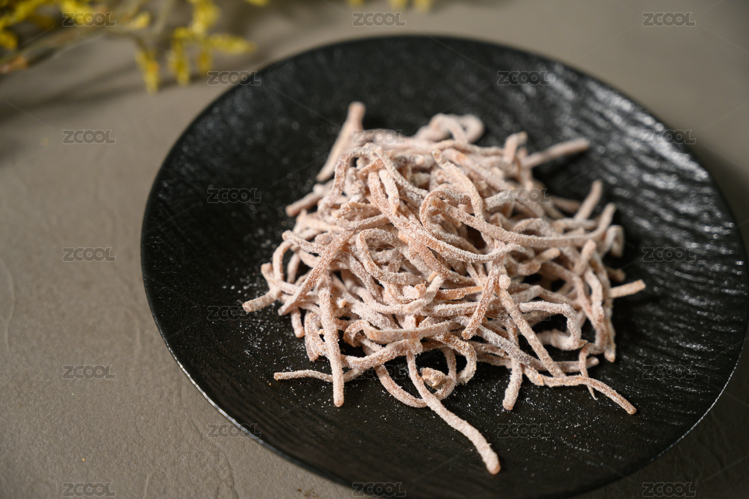 桌面上的盘子里的干爽的人参须