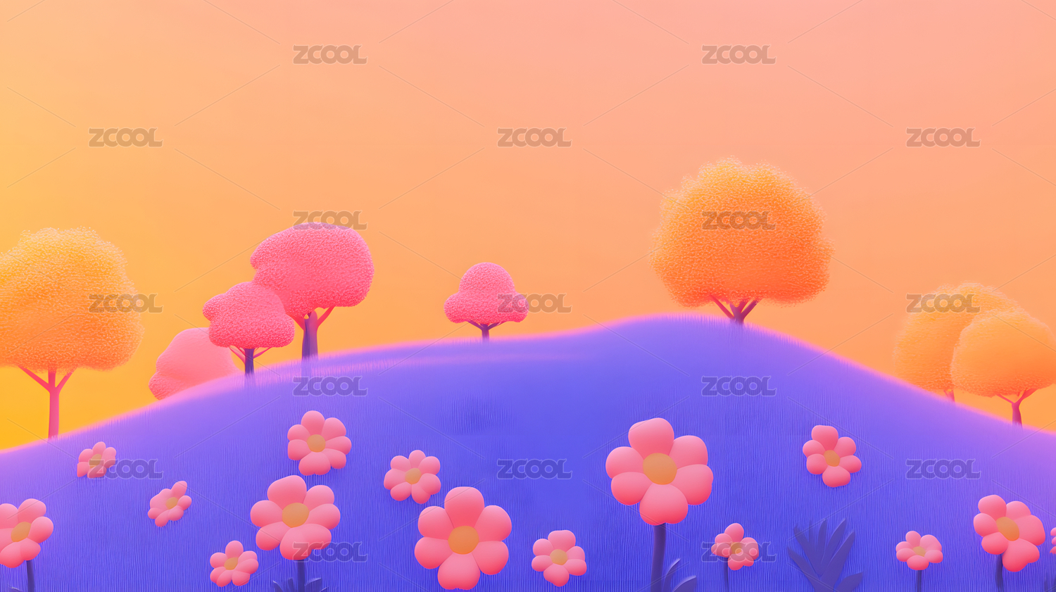 3d,立体,可爱,卡通,温柔,柔和,彩色,风景,山峰,景观