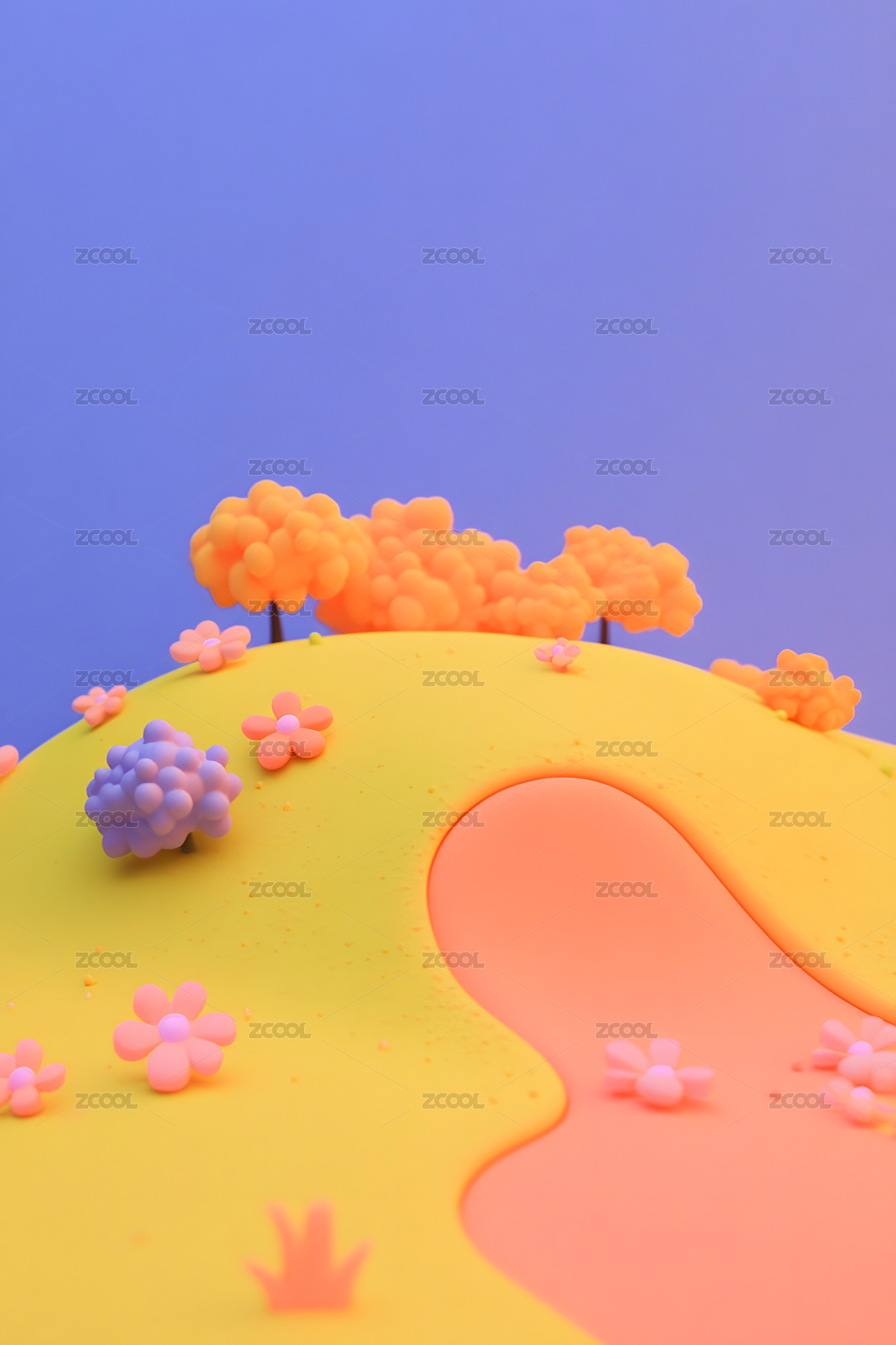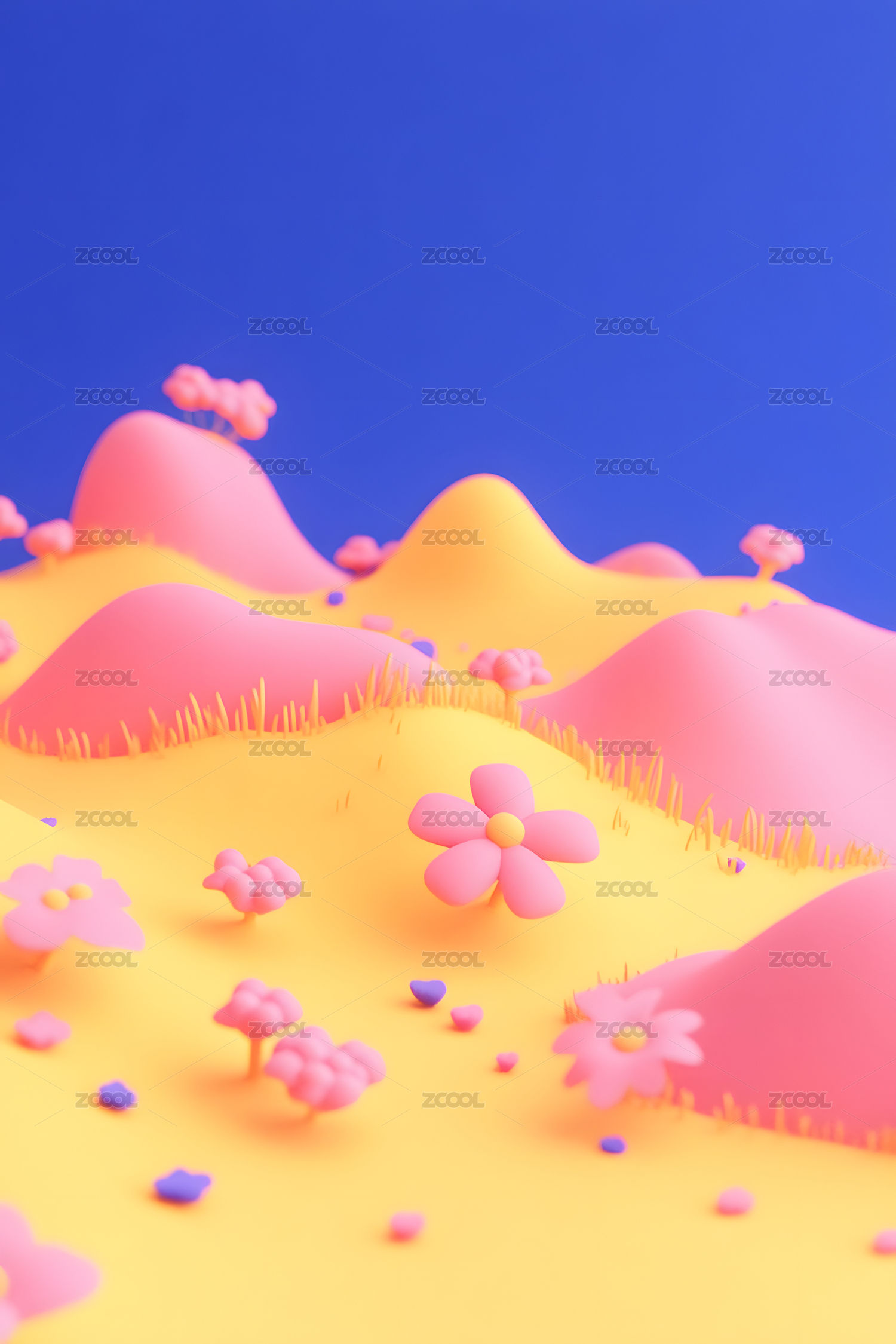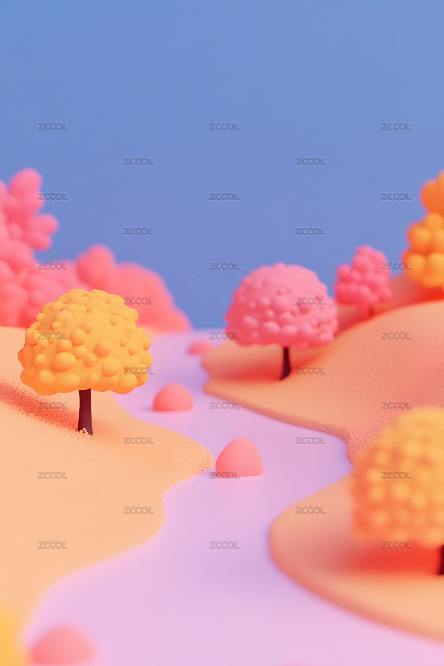 3d,立体,可爱,卡通,温柔,柔和,彩色,风景,山峰,景观