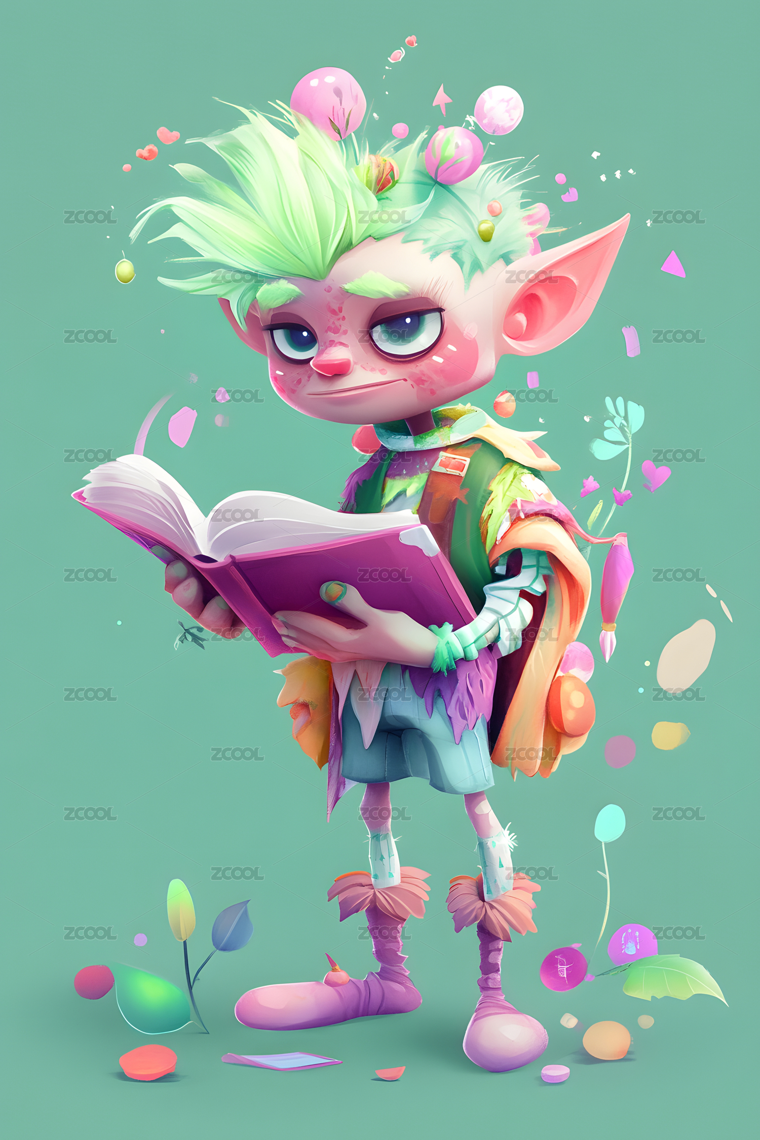 卡通, 可爱, 插图, 动画, 艺术, 奇幻,绿色, 小妖精, 怪异, 滑稽
