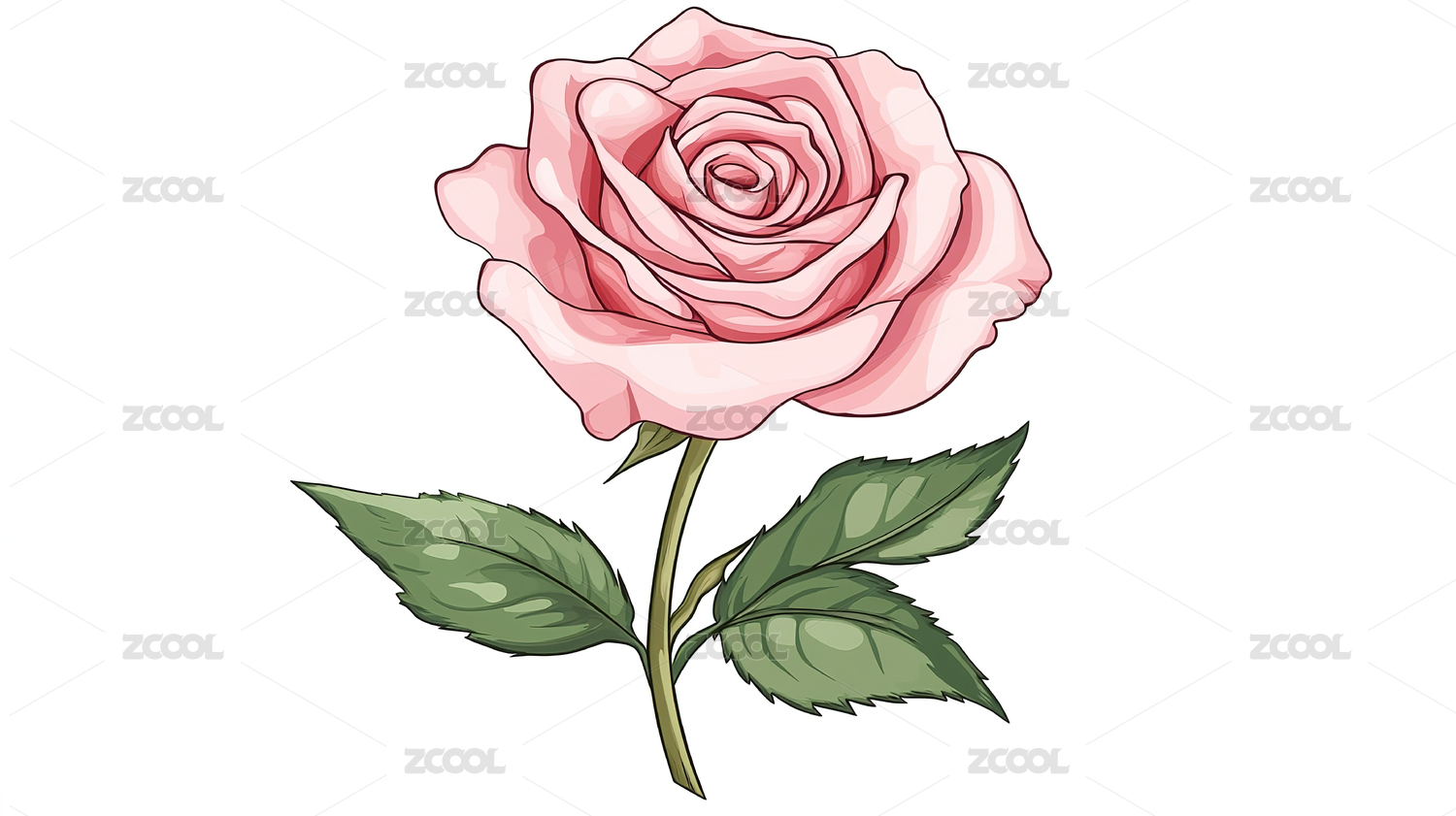 植物,清新,简洁,优雅,茎,插画,卡通,粉色,叶子,玫瑰