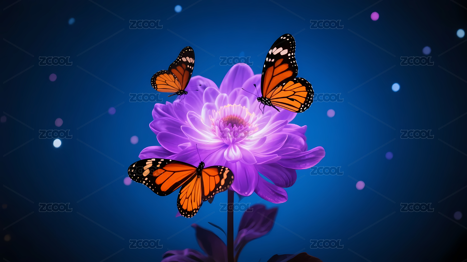 蓝色蝴蝶停驻花瓣展现自然艺术