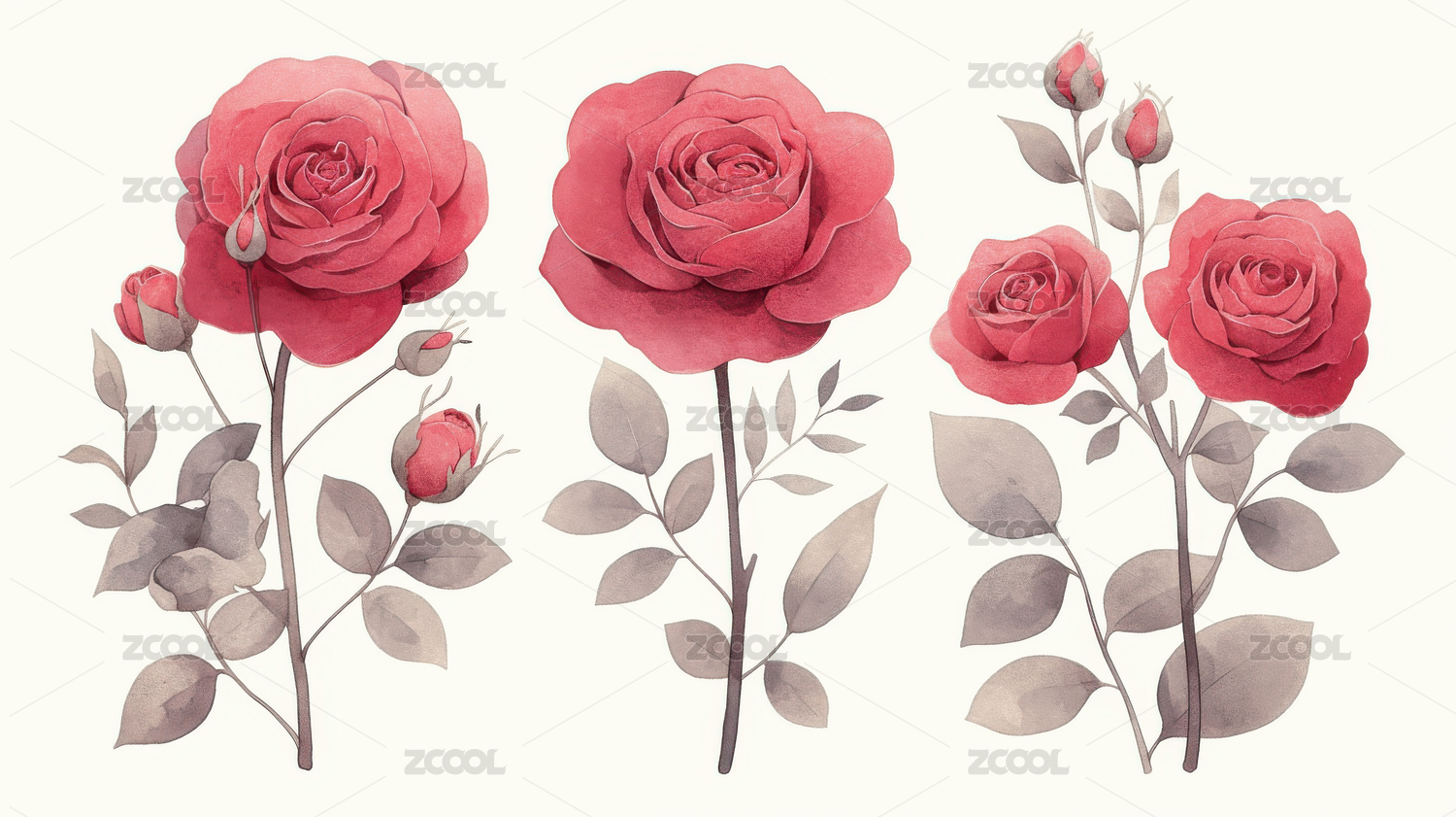 手绘水彩玫瑰花元素