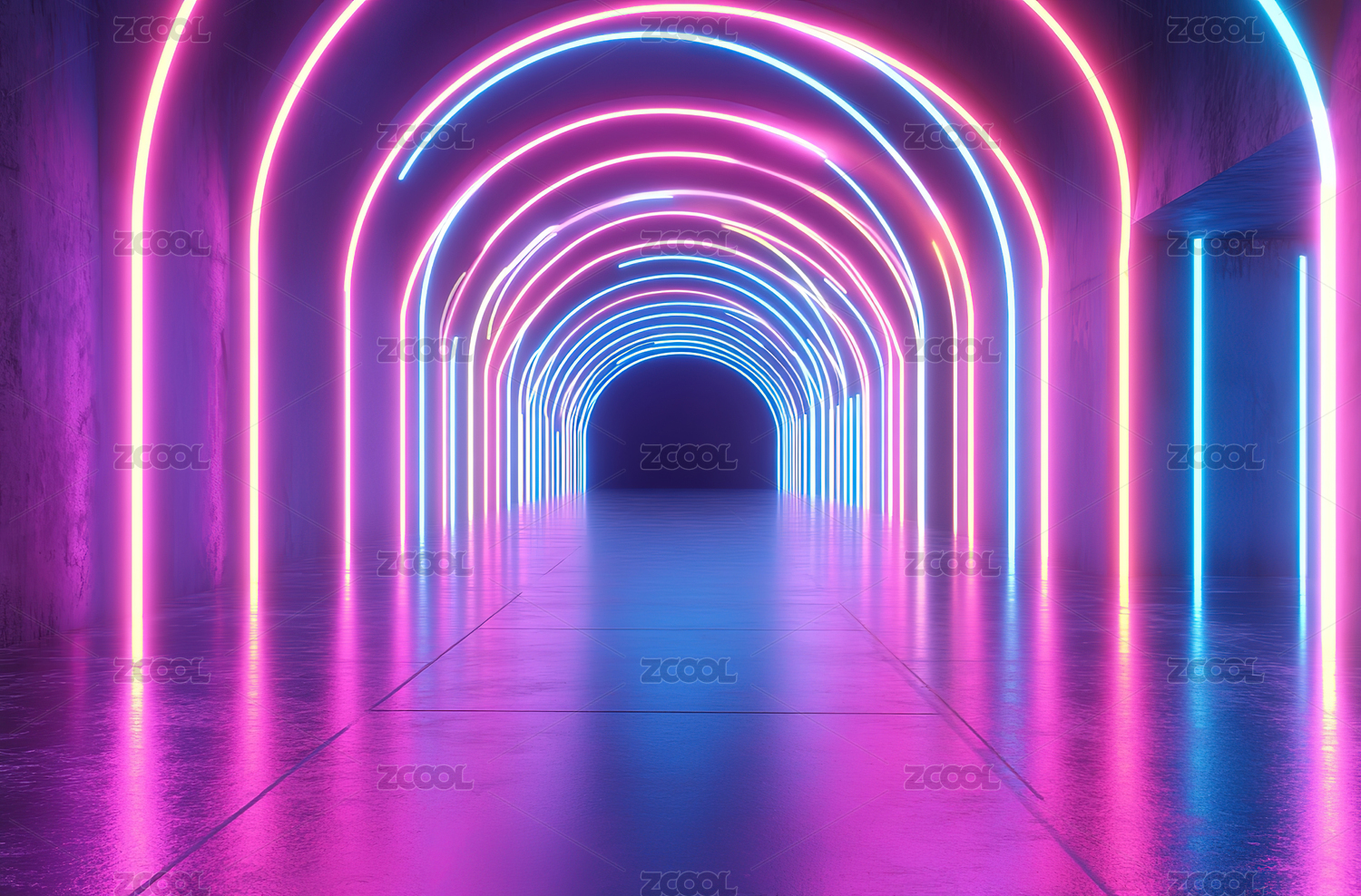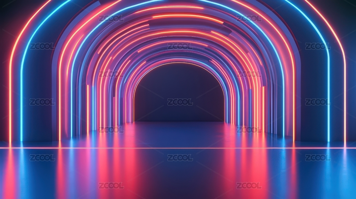 光影,现代,蓝色,科技,抽象,隧道,霓虹,红色,反射