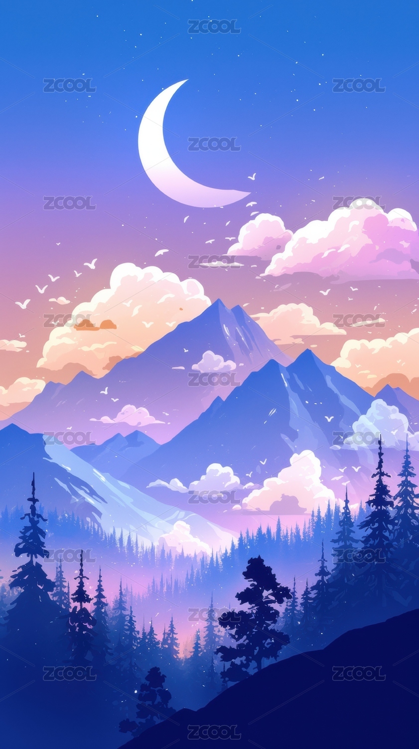 壁纸,动漫,二次元,插画,治愈,花朵,风格,梦幻,天空,粉紫色