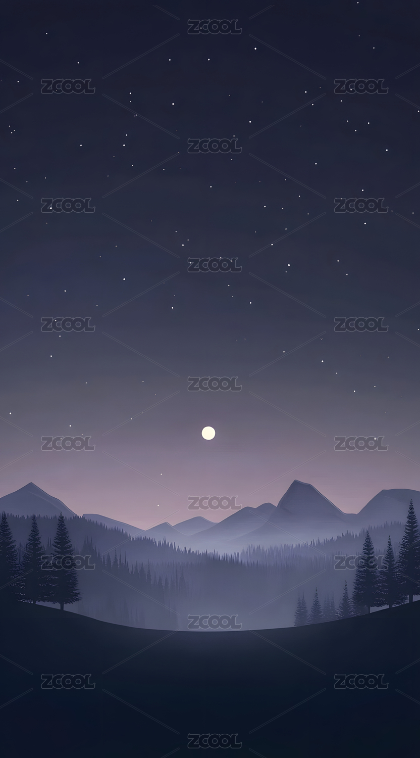 手绘唯美的抽象艺术感夜晚天空风景插画