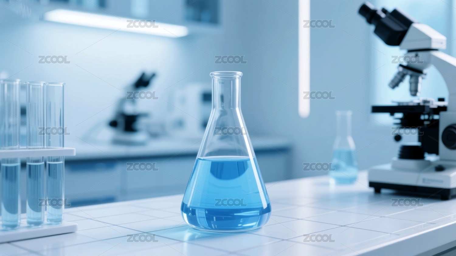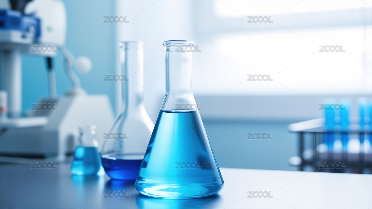 锥形瓶冷色调实验室场景