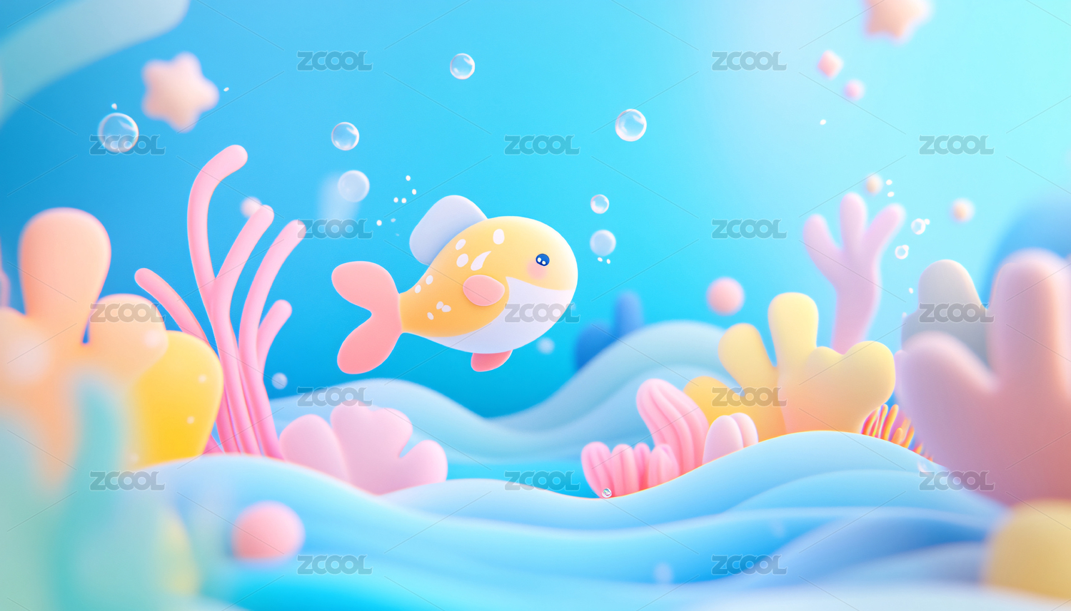 三维立体,3D,纸艺,鱼,珊瑚,海洋,背景,壁纸,插画,创意