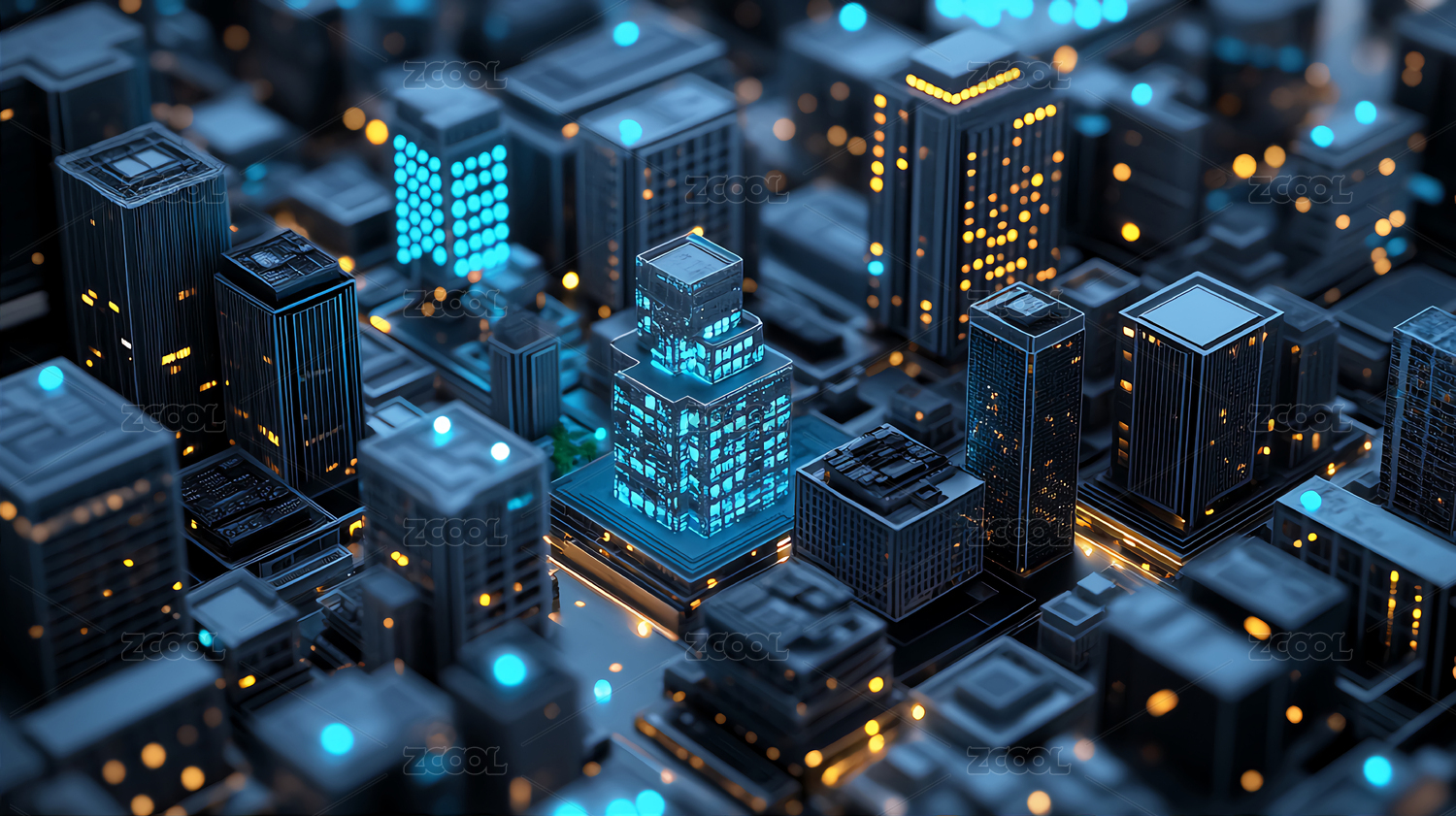 等距视图风格的未来智慧城市模型