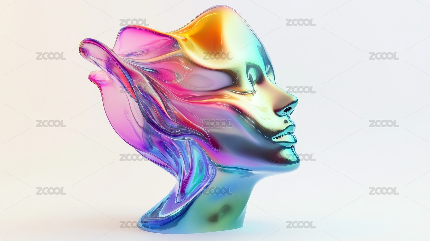 彩色浅浮雕牛奶液体颜料女性3D立体头像