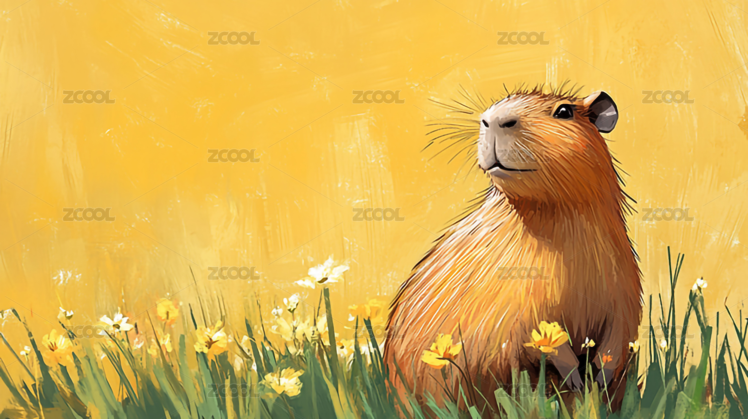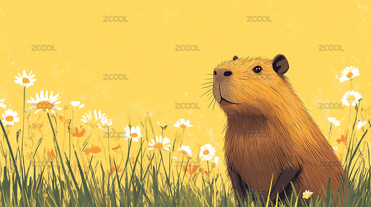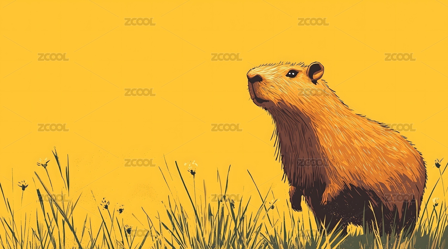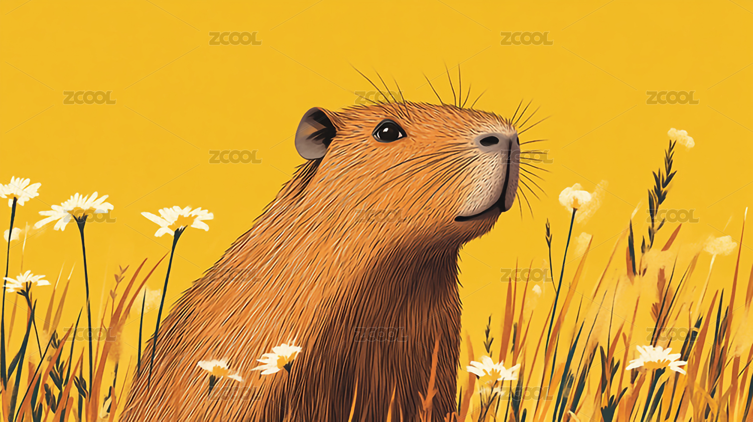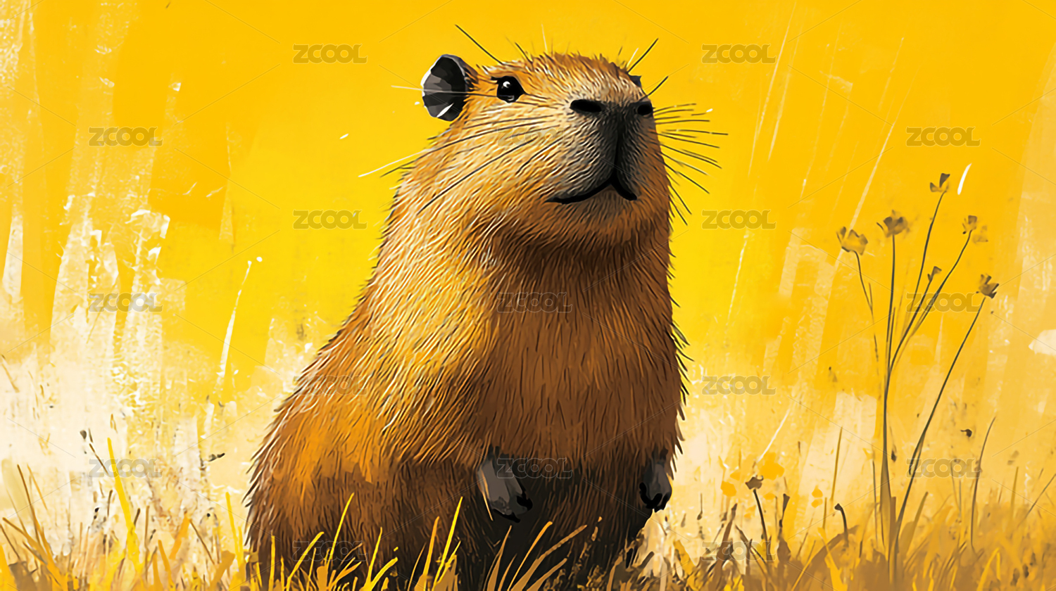 豚鼠,卡皮巴拉,可爱,形象,吉祥物,动漫,搞笑,简约,头像,艺术