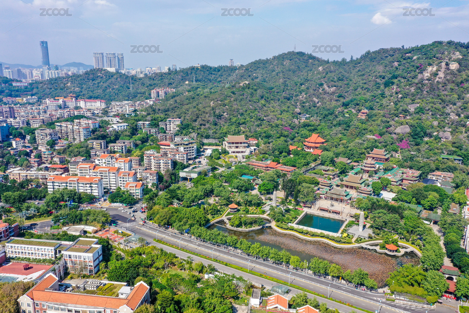 航拍中国福建厦门南普陀寺寺院建筑群及五老峰