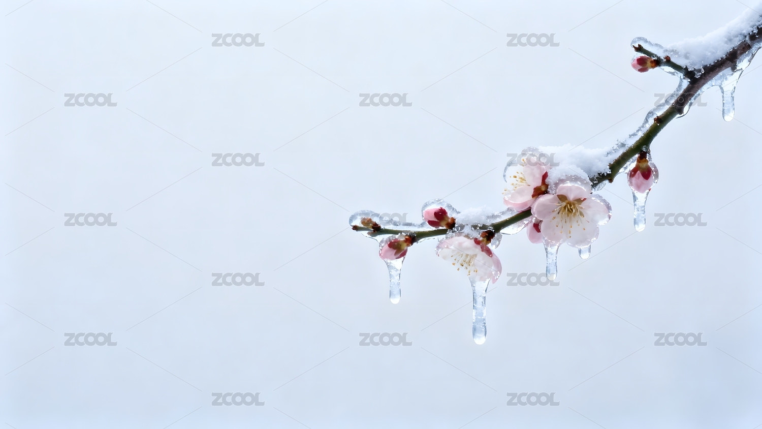 雪中梅花枝头挂冰凌