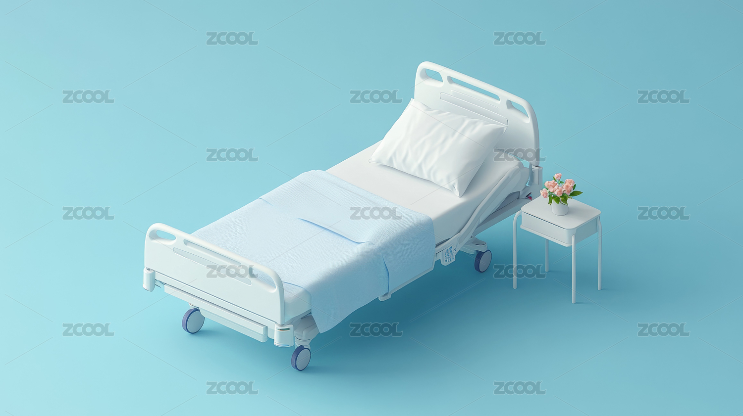 3D,背景,病床,病房,病人,场景,床,床位,创意,单人病床