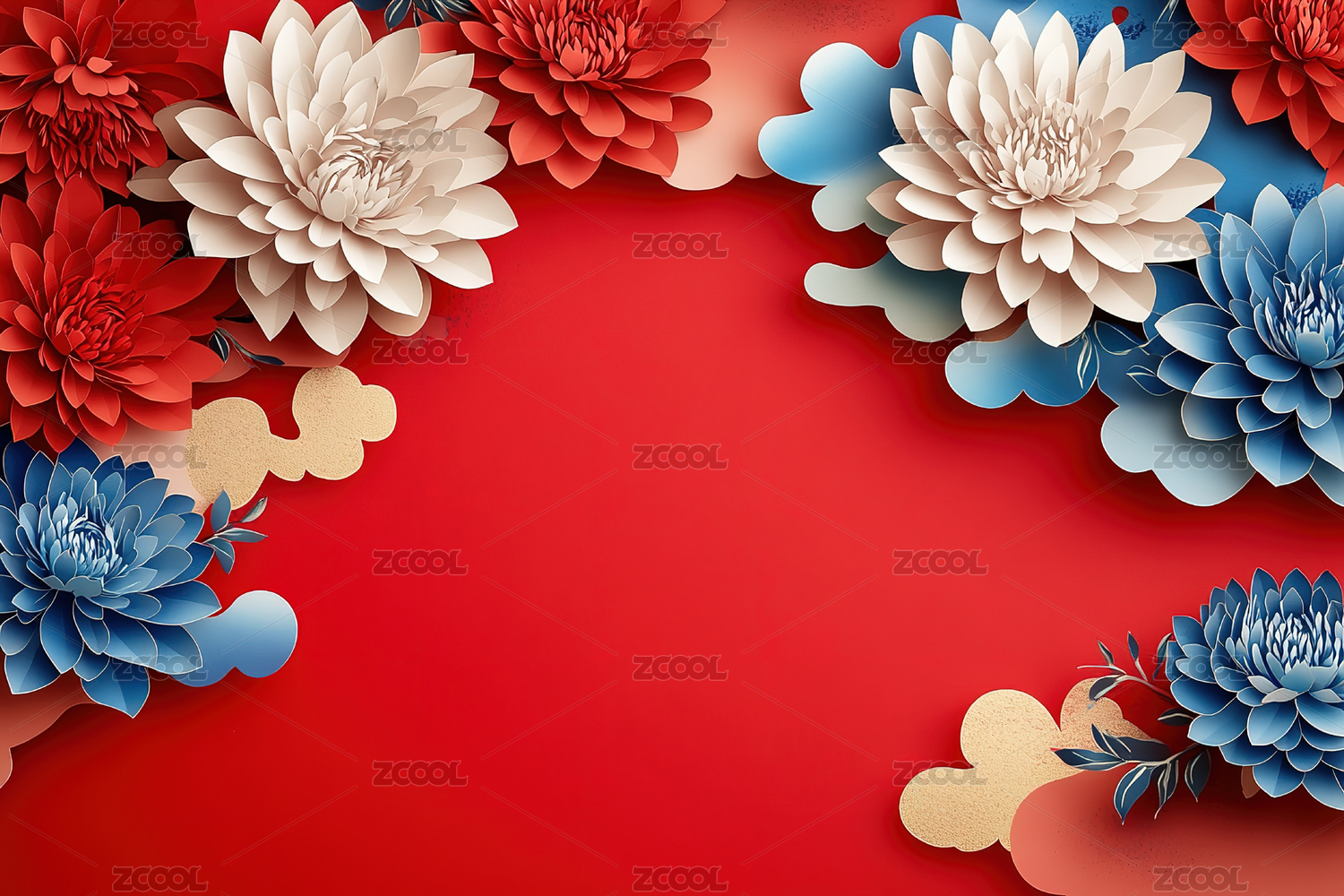 中式红底繁花国风背景图案
