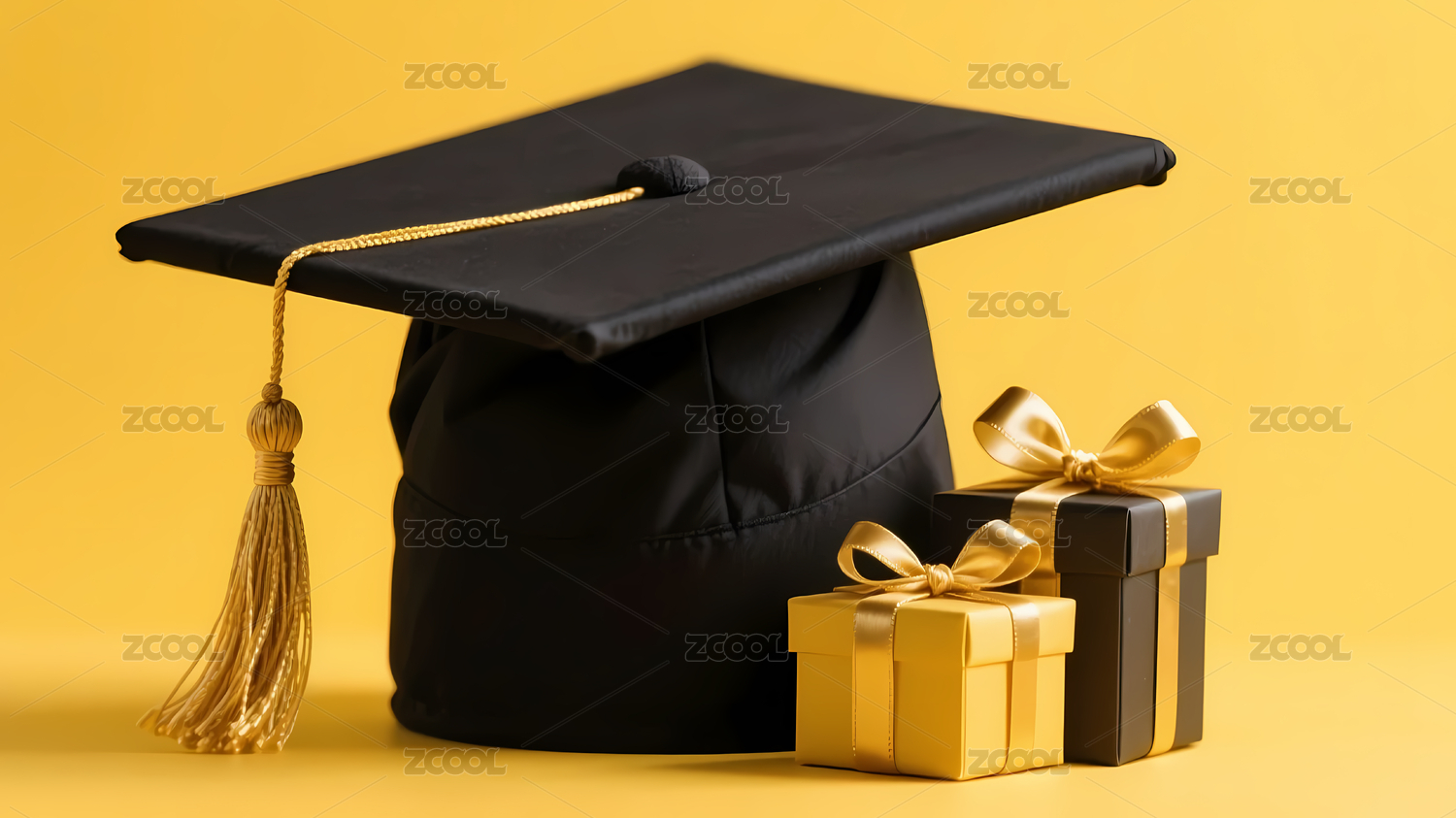 黑色毕业帽金色礼盒