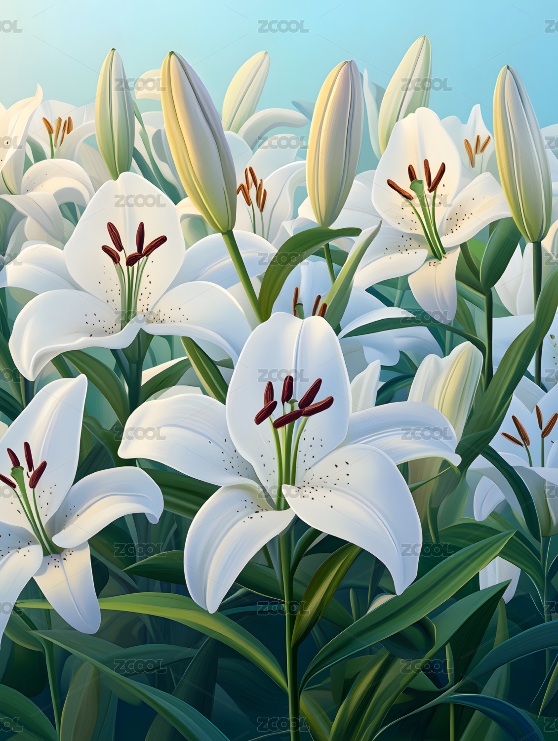 晨光中绽放的百合花园