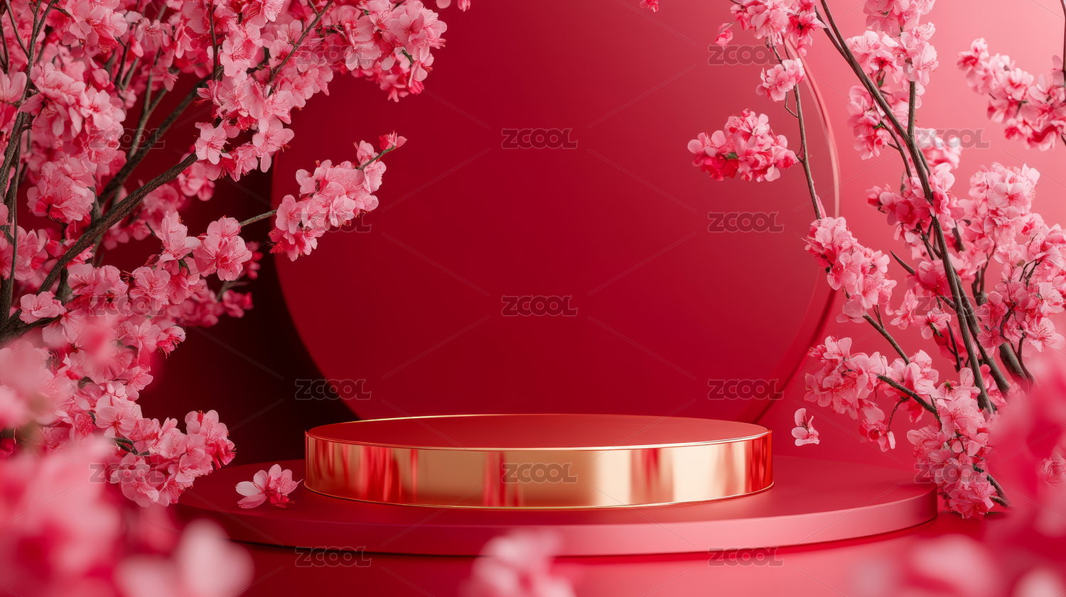 红色,舞台,樱花,装饰,金色,背景,节日,展示