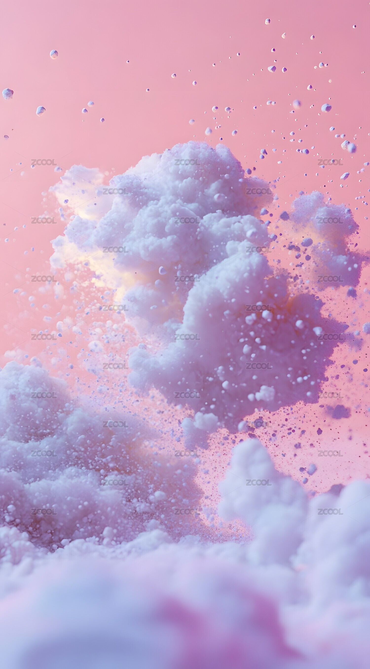 粉红色烟雾在白色背景中弥漫的梦幻画面