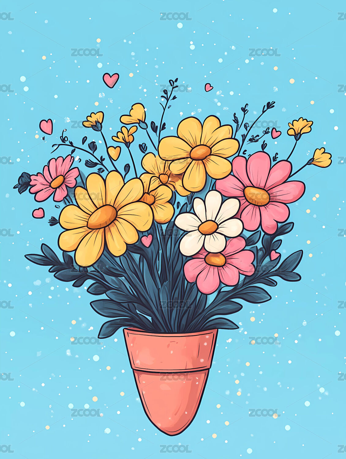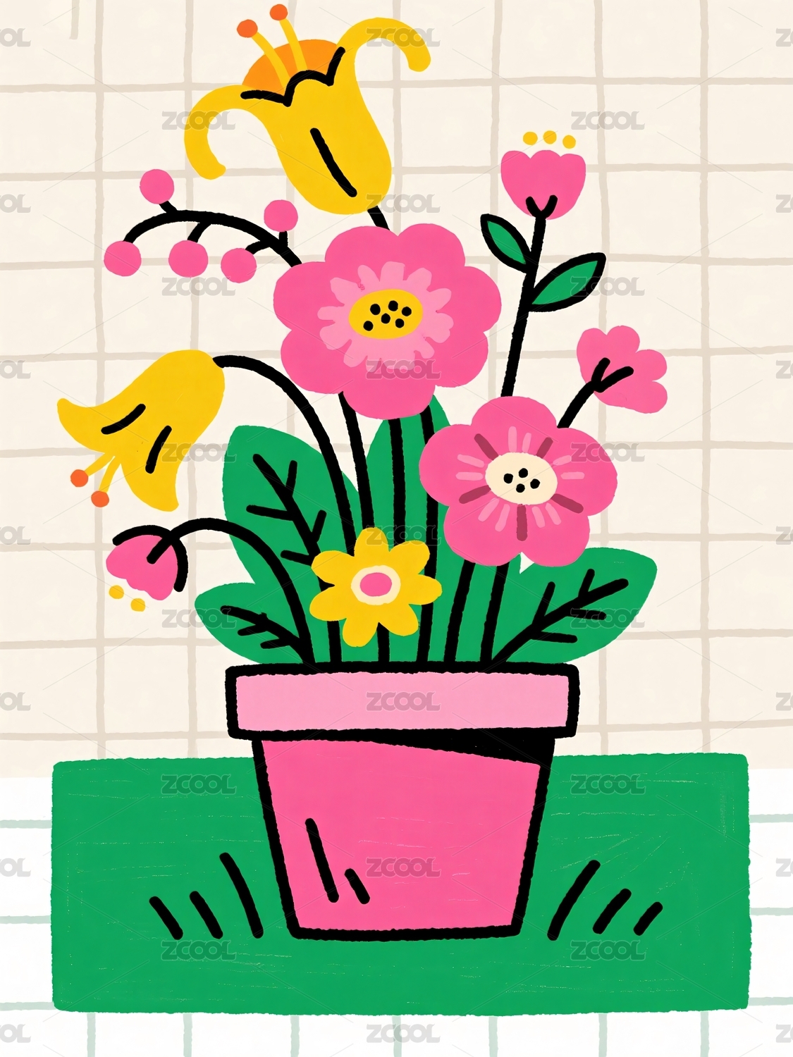 植物,绿色,复古,红色,艺术,黄色,花朵,简洁,粉色,双手