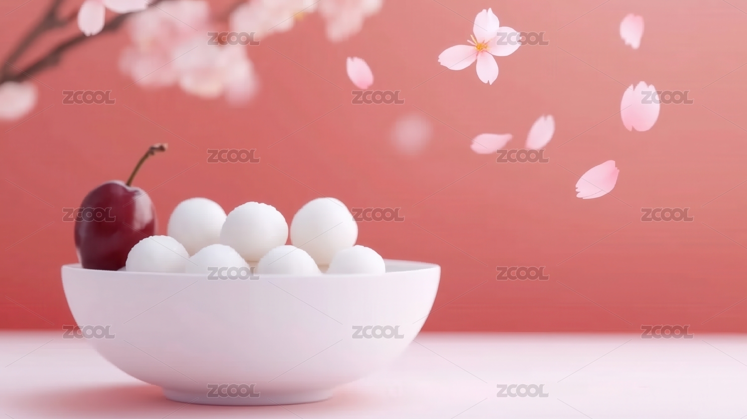 汤圆甜品与樱花
