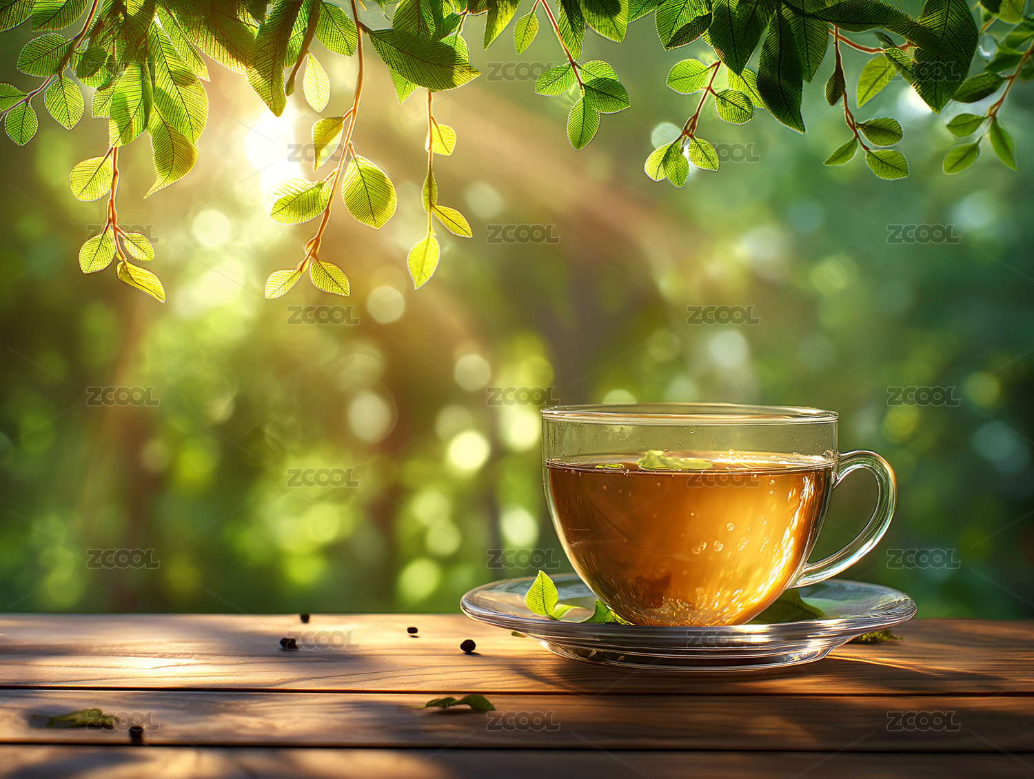 绿叶,自然,花朵,阳光,户外,春日,清茶,茶杯,茶叶,树枝